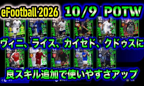 【eFootball】10/9 POTW:今週はこっちが強力。ヴィニ、ライス、カイセド、クドゥスなどが良スキル追加でお手軽に使える形に