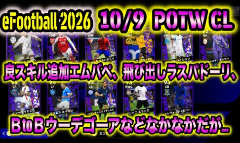 【eFootball】10/9 POTW CL:良スキル追加エムバペ、飛び出し変化ラスパドーリ、BtoBウーデゴーアなど、こちらも割と見どころはあるが…