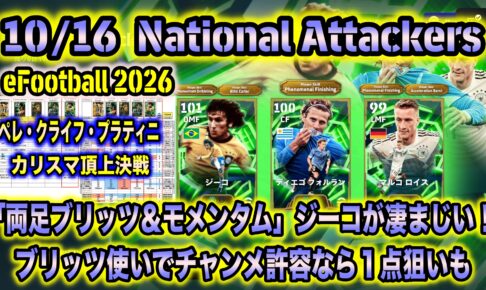 【eFootball】10/16 National Attackers:「圧倒的操作感」両足ブリッツ&モメンタム・ジーコが凄まじく強い!ペレ・クライフ・プラティニと比較「カリスマ頂上決戦」