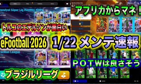 【メンテ明け】【eFootball 2026】1/22 メンテ速報:アフリカガチャは100BOXで4人!BigTimeマネ!トルコ、ブラジルShowTimeにPOTWも