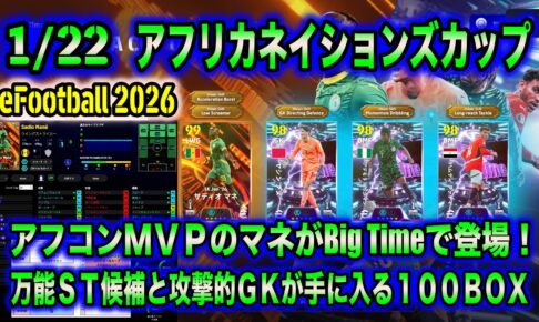 【メンテ明け】【eFootball 2026】1/22 メンテ速報:アフリカガチャは100BOXで4人!BigTimeマネ!トルコ、ブラジルShowTimeにPOTWも