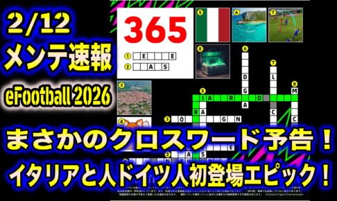 【随時更新】【eFootball 2026】2/12 メンテ速報:まさかの「クロスワード」エピック予告!イタリア人ドイツ人伝説の超強力アタッカー2名が初参戦!