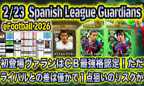 【eFootball 2026】2/23 Spanish League Guardians:トータルバランスに優れたヴァランはCB最強格!ただライバルとの差は僅か&1点狙いのリスクが