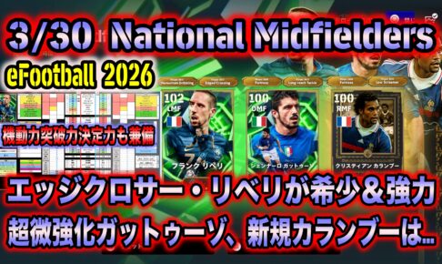 【eFootball 2026】3/30 National Midfielders:キレキレエッジクロサー変化のリベリが希少&強力!変化なし超微強化ガットゥーゾ、新規登場カランブーは…