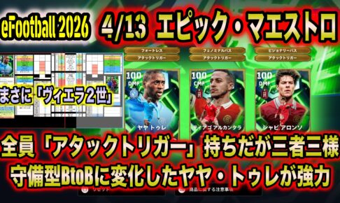 【eFootball 2026】4/13 エピック・マエストロ:全員「アタックトリガー」持ち!「フィジカル系守備型BtoB最高峰」ヤヤ・トゥレが気になる