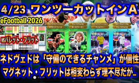 【eFootball 2026】4/23 ワンツーカットインA:新リンクアップは「パス&クロスラン」で代用が。ネドヴェドは守備に個性、マグネット・フリットvsバレット・フリット