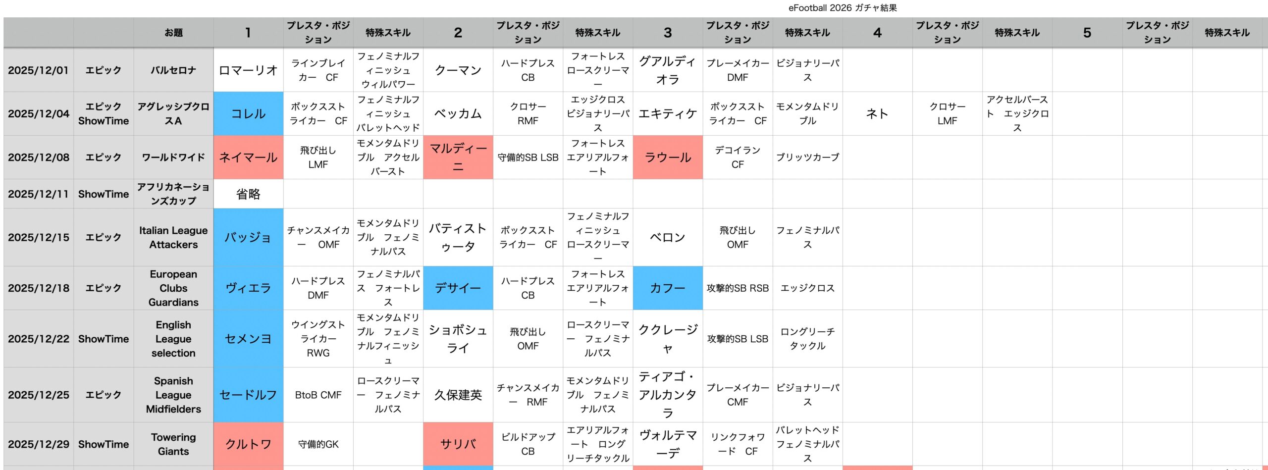 その後は月初に先月のガチャを
