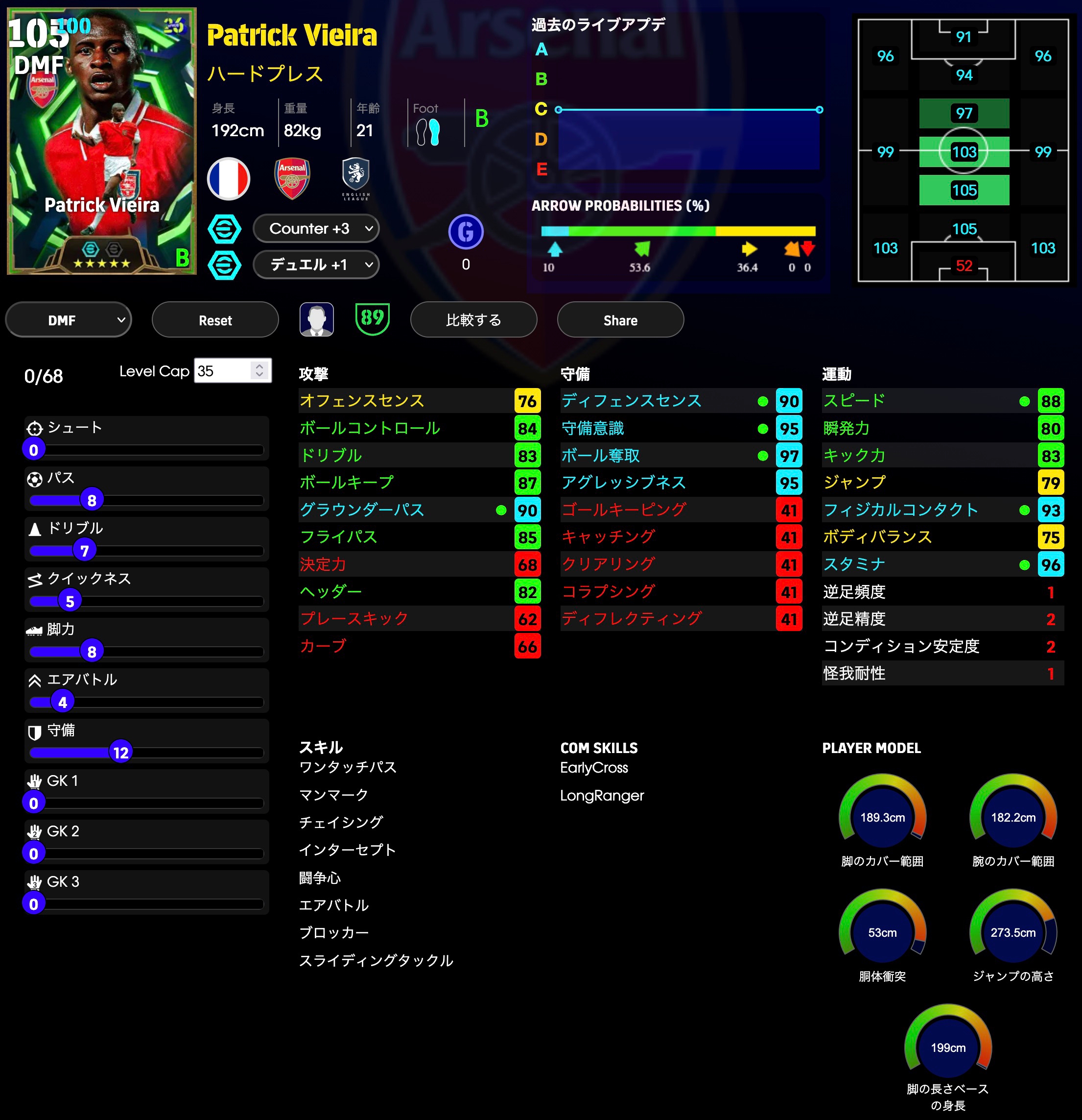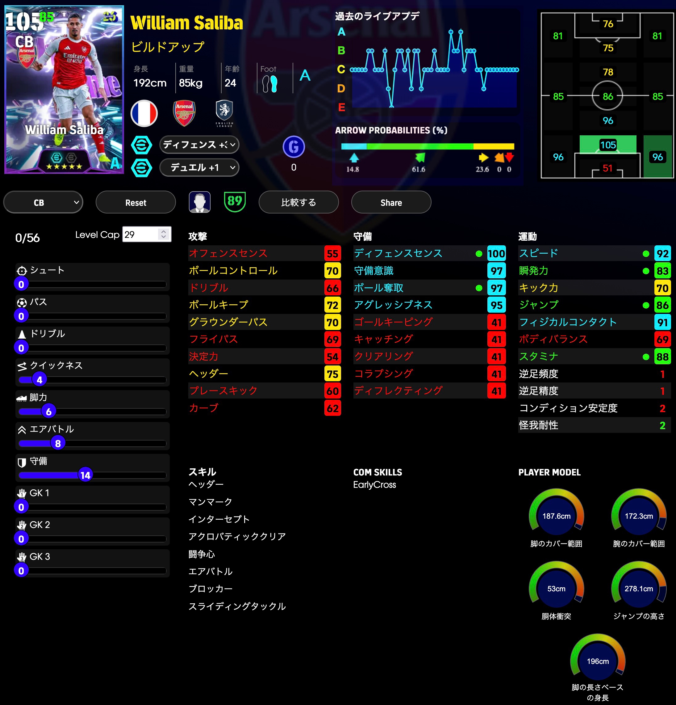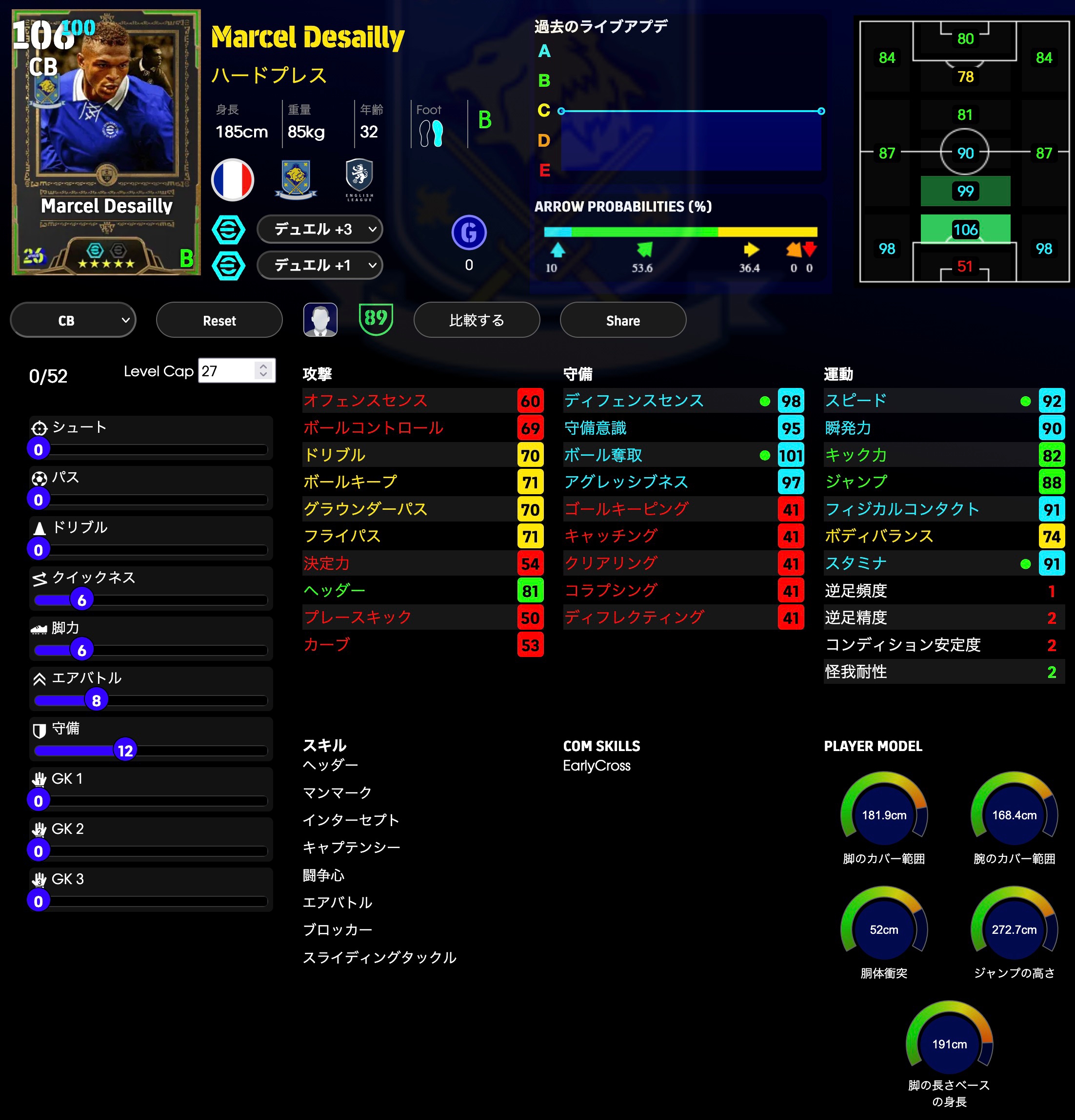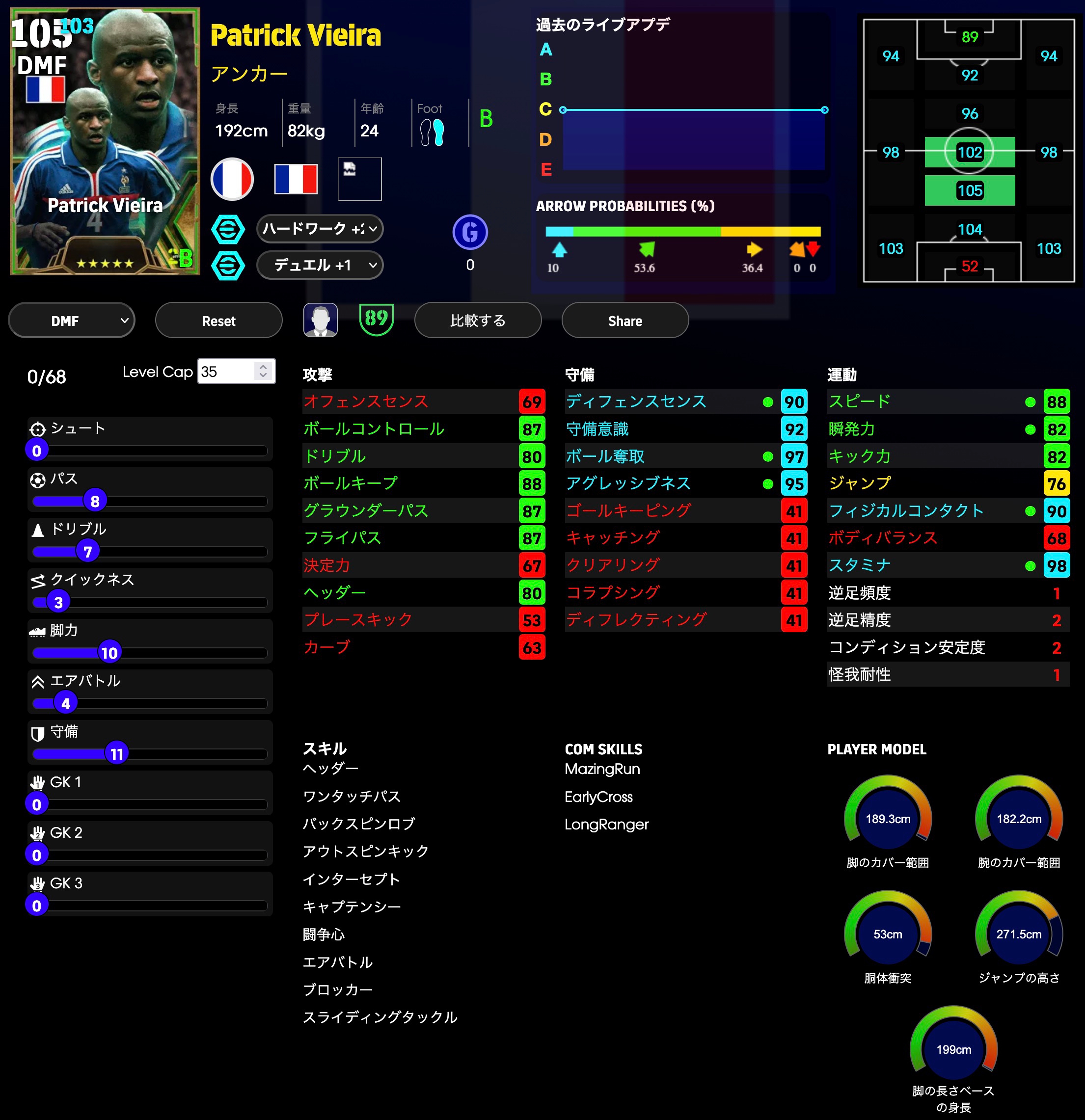 ディフェンス能力をかなり多く振ってます。