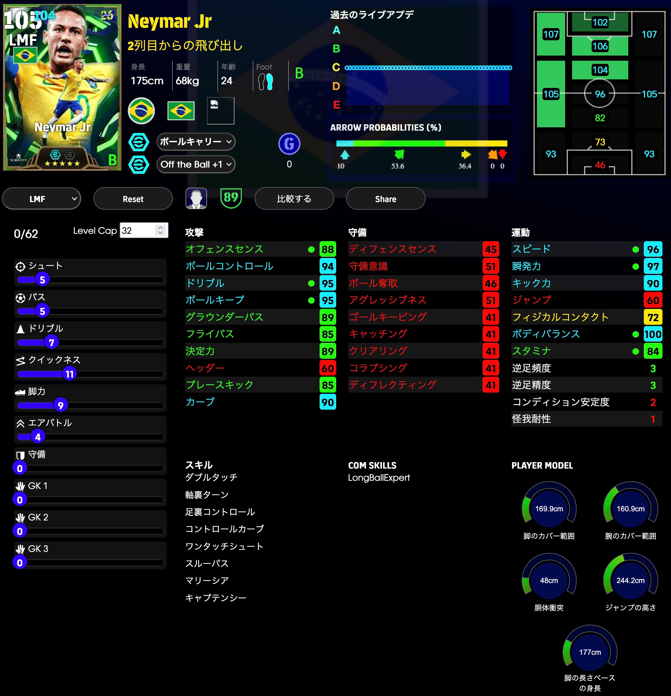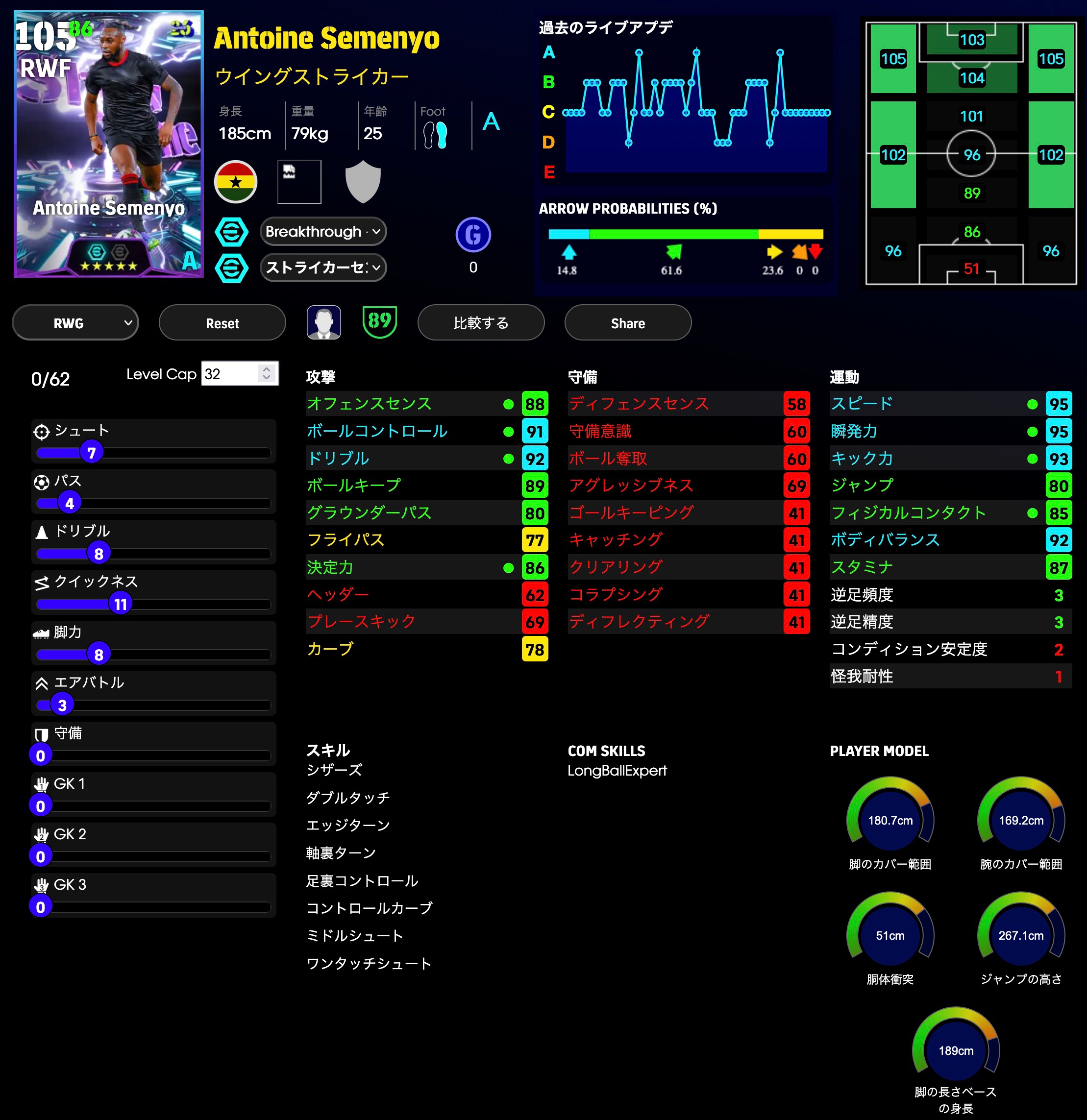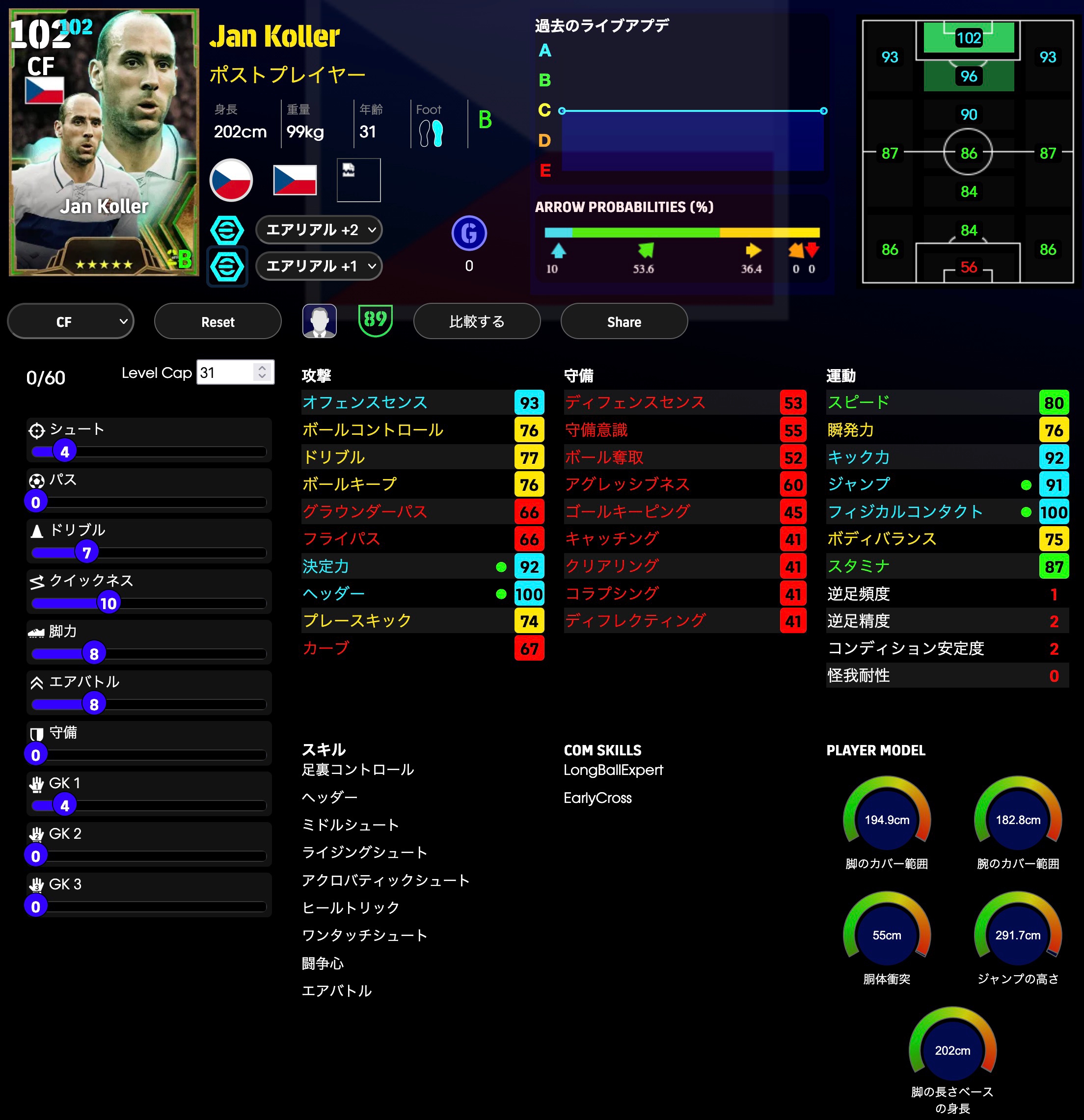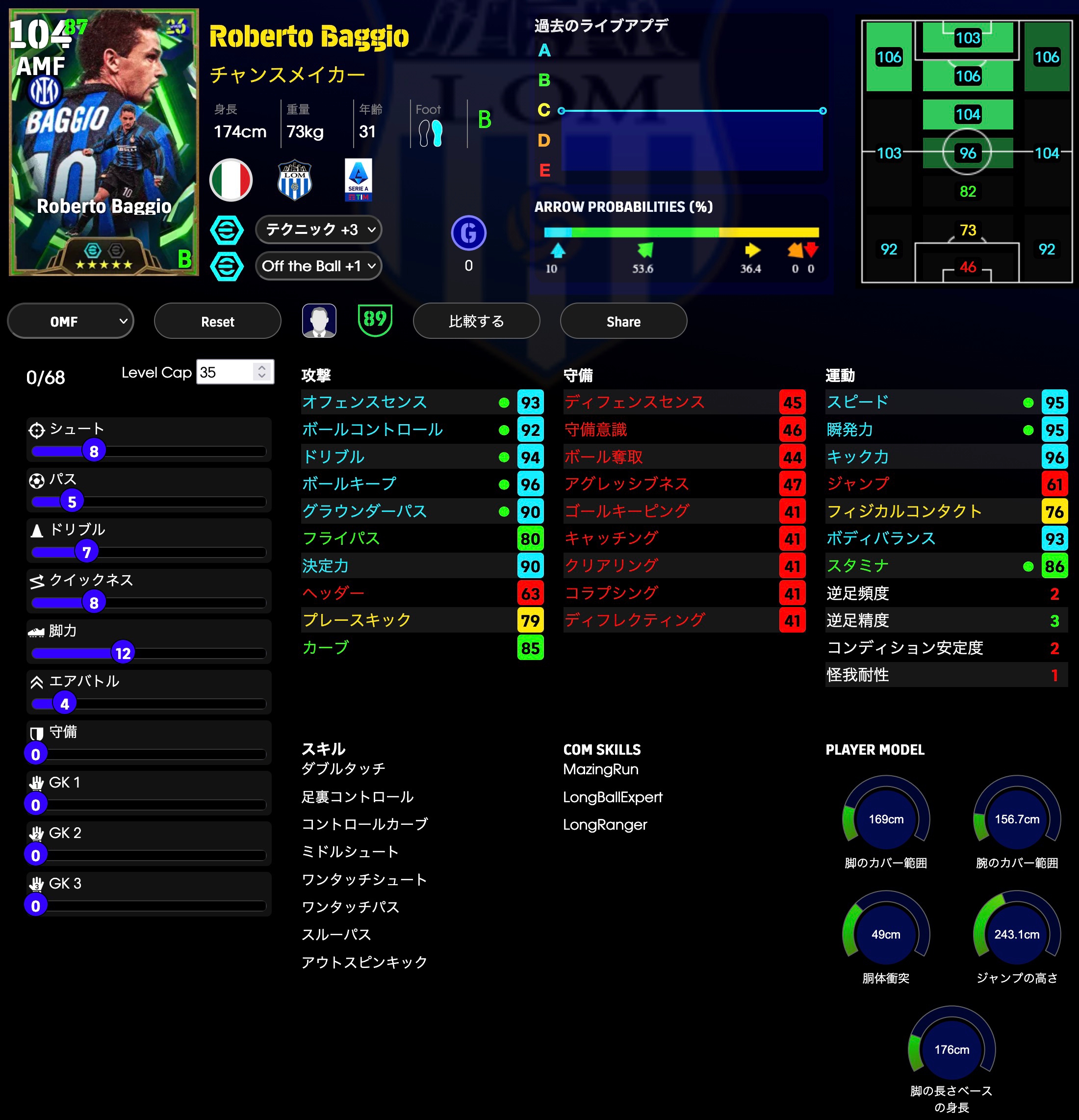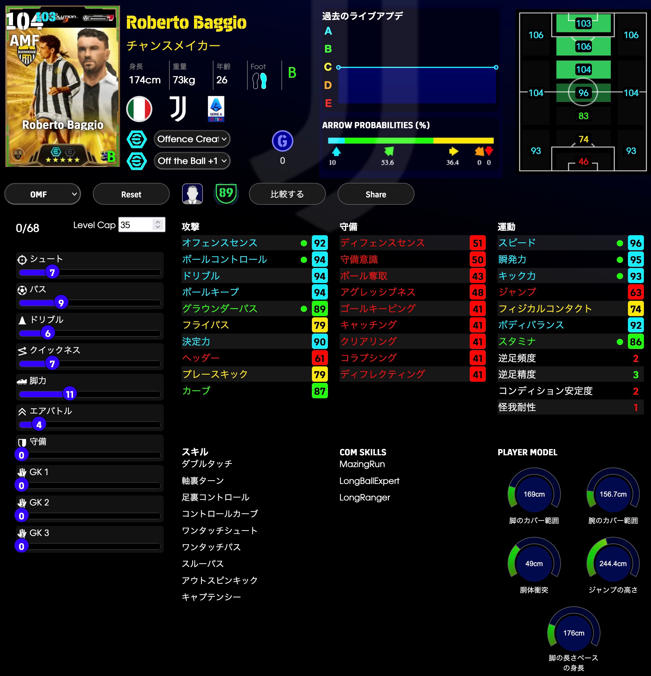 ディフェンス能力をかなり多く振ってます。