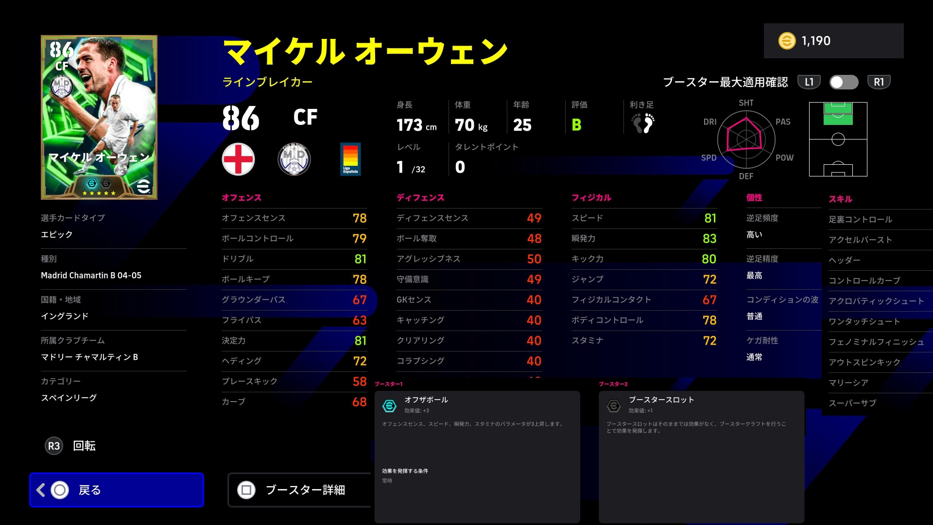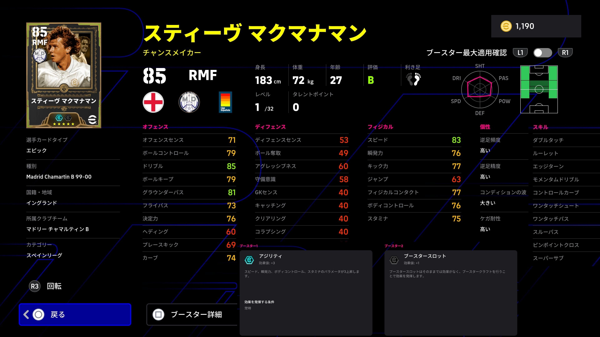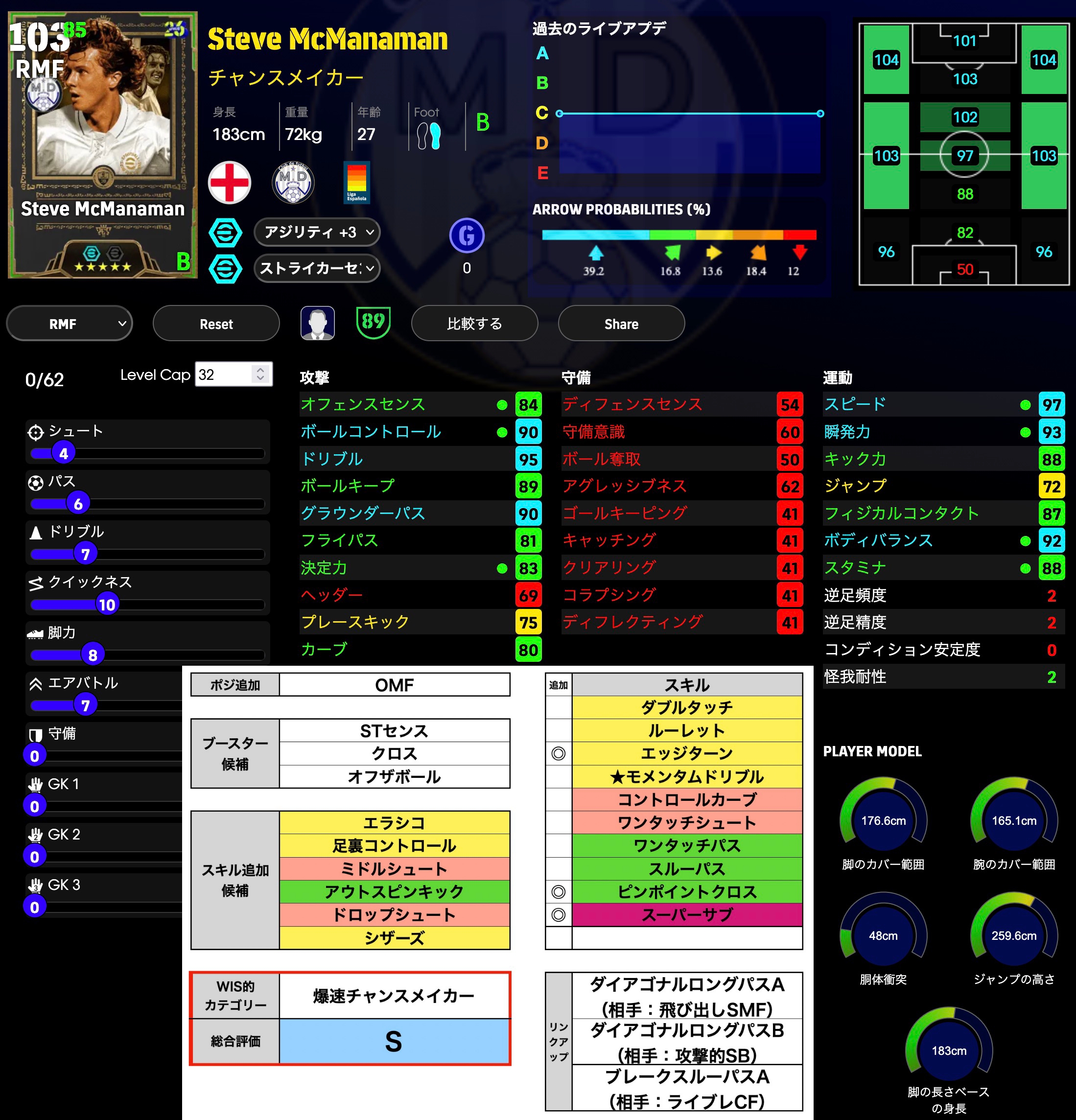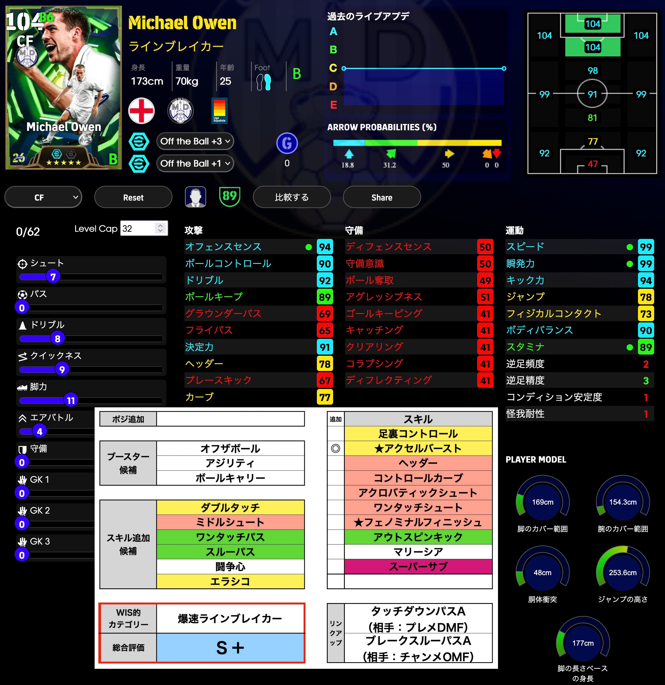 瞬発を重点育成しOセンスもアップ。