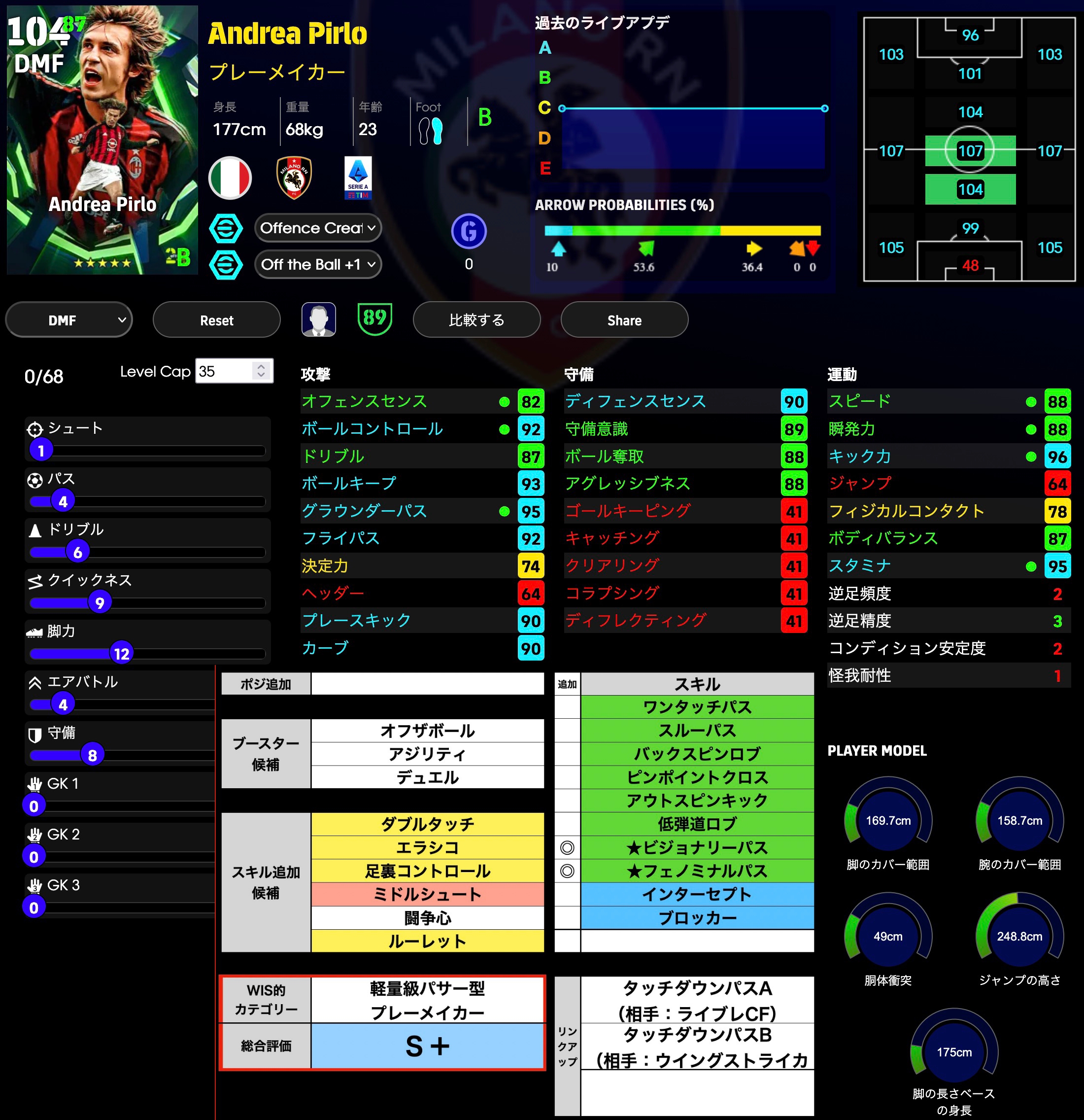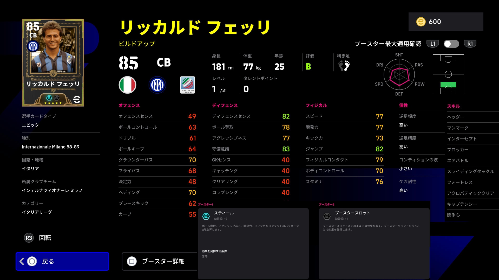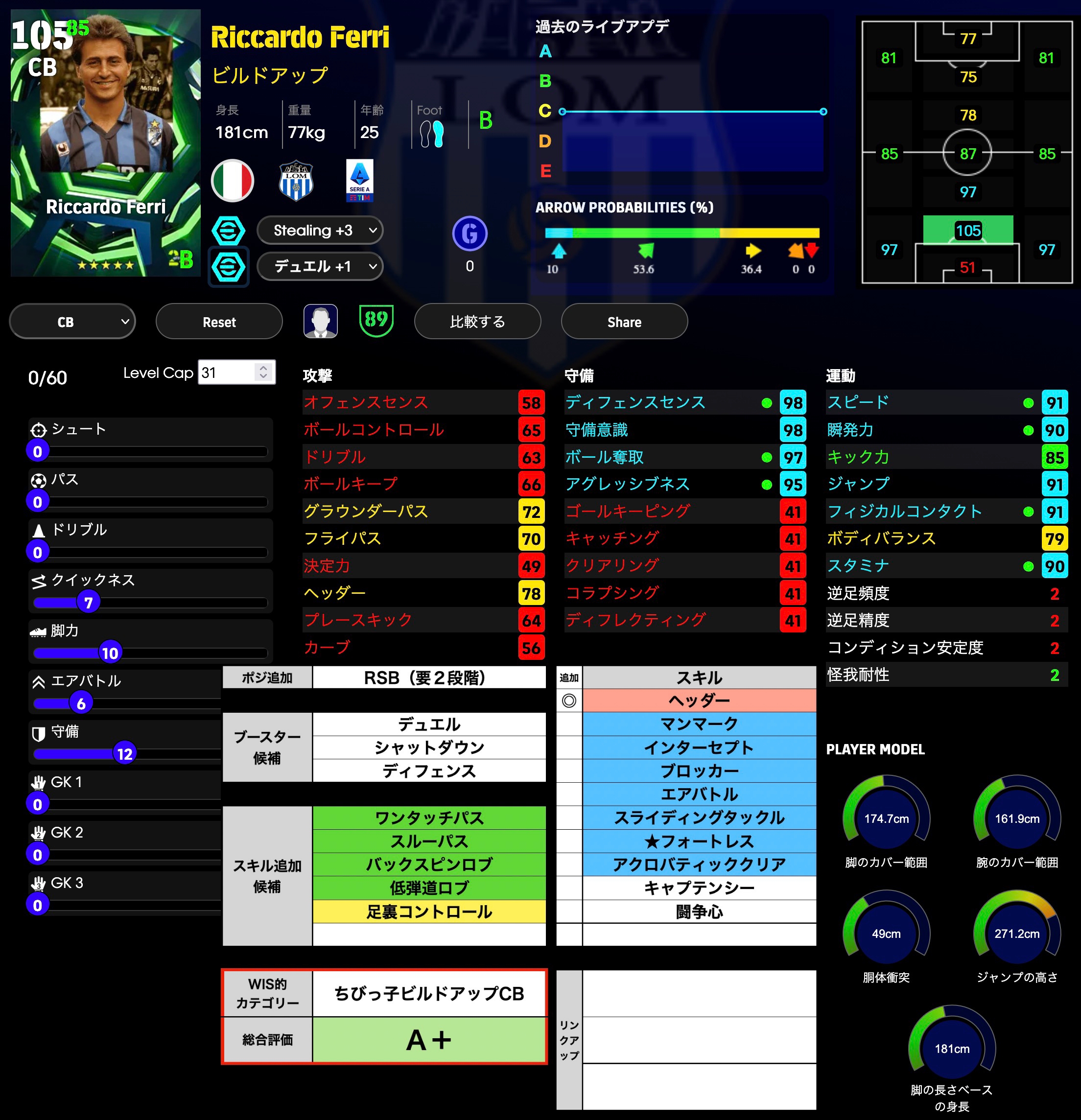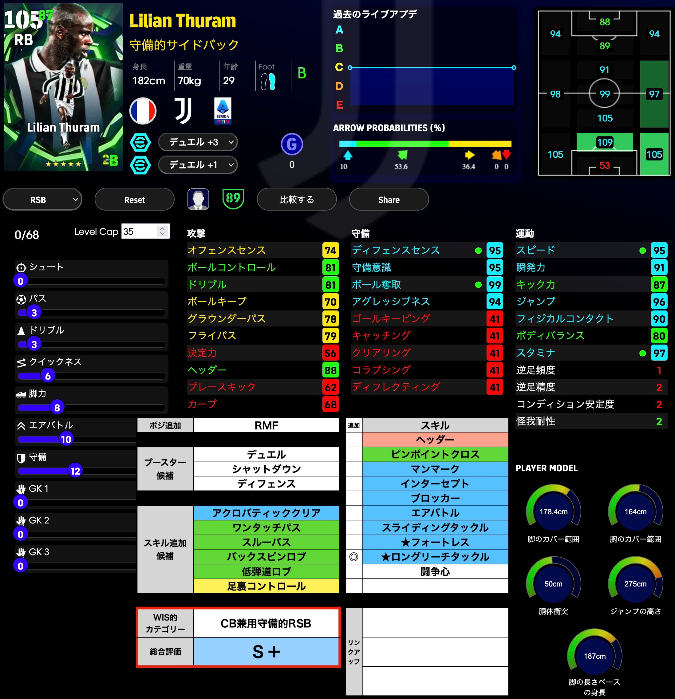 守備90、ドリブルもバフ+3、