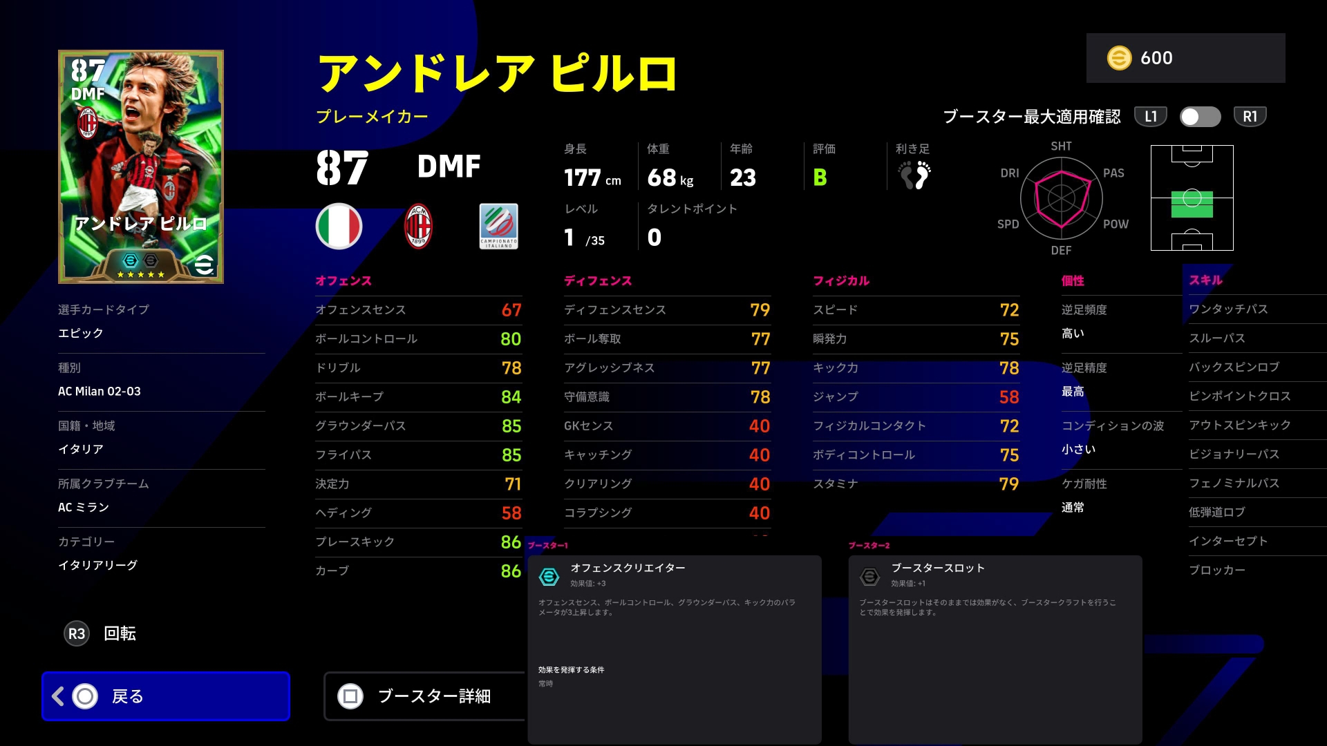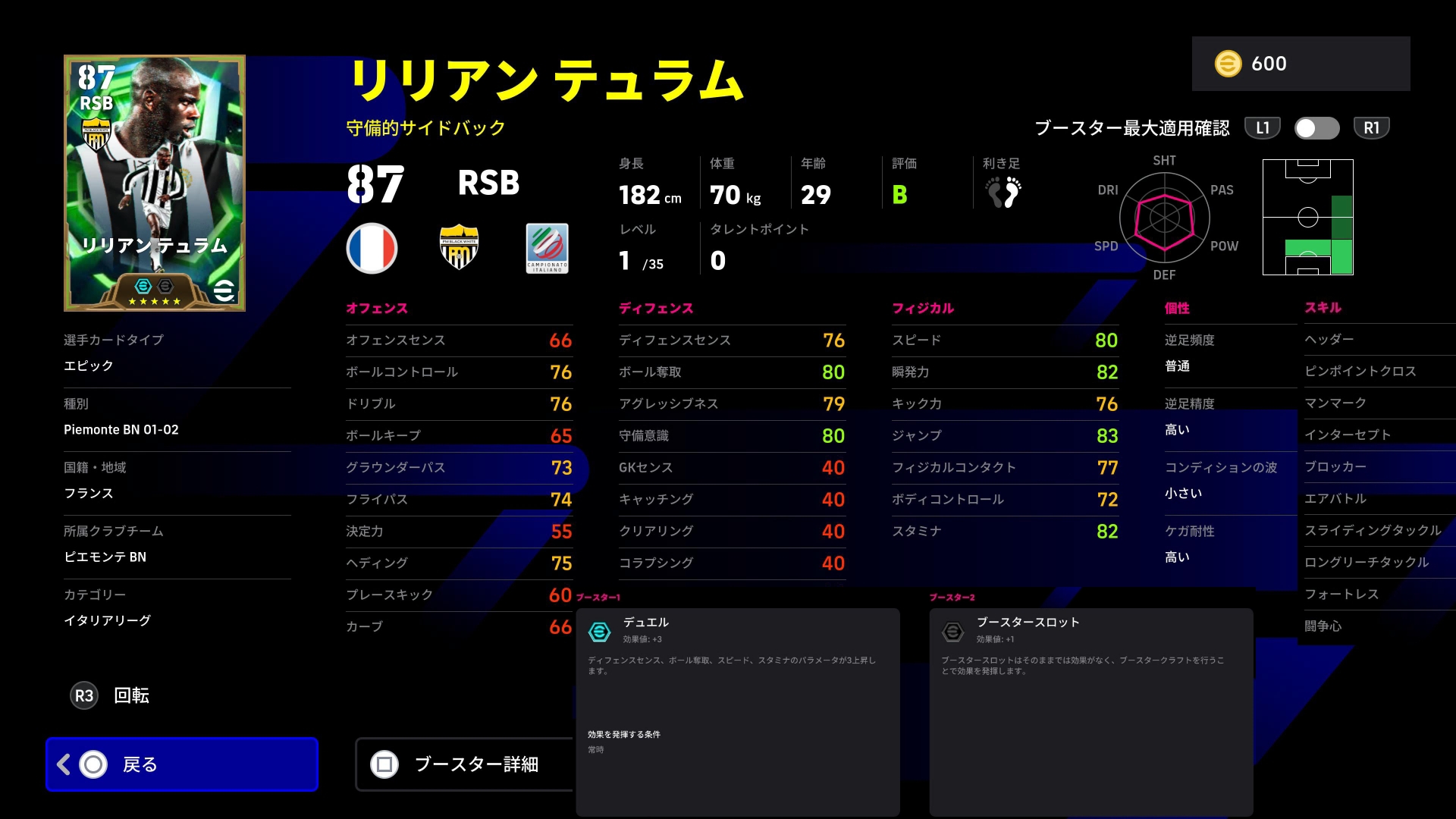 【eFootball 2026】2/2 Italian League Guardians:ロングリーチ追加テュラムは最強守備的RSB認定!ピルロは特殊パススキル2種・カペッロのリンクアップに最適