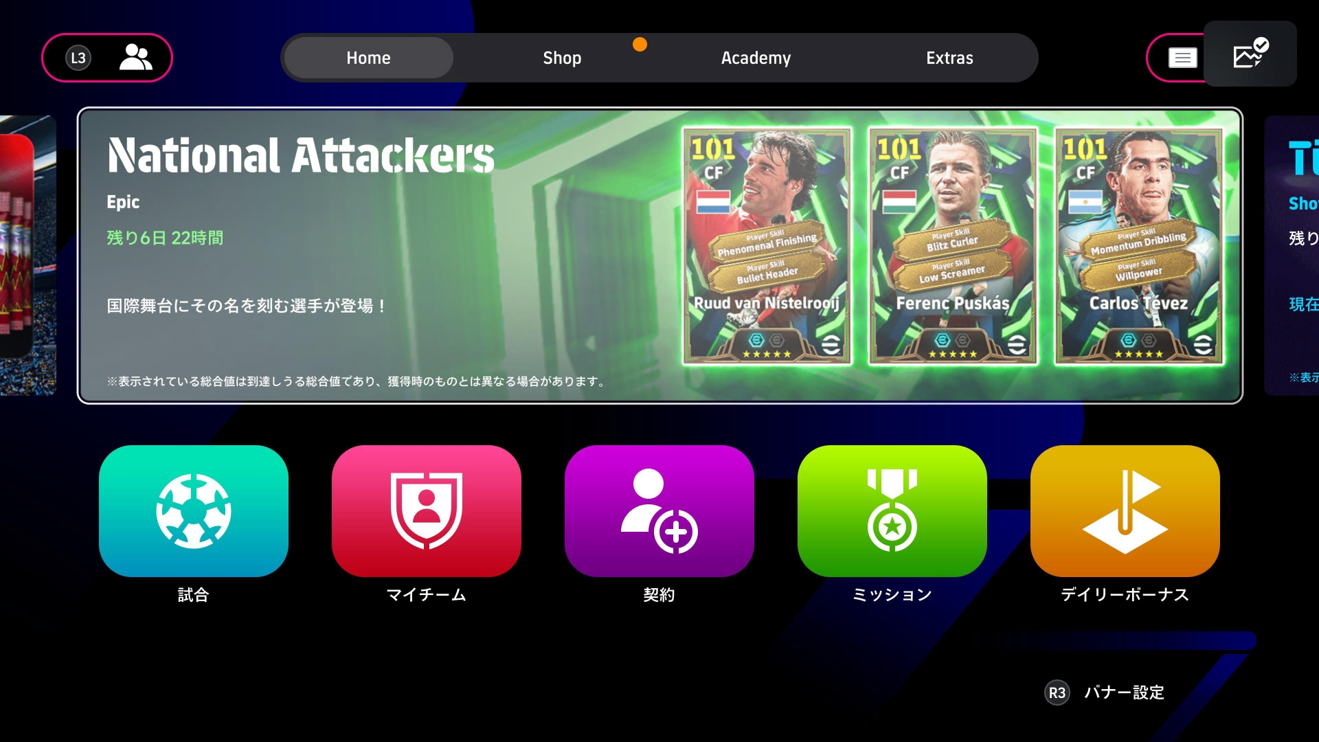 特殊シュート2種が光るリンク。