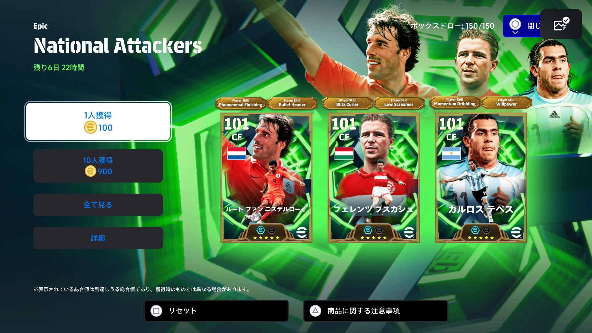 プスカシュとテベスは2回目、