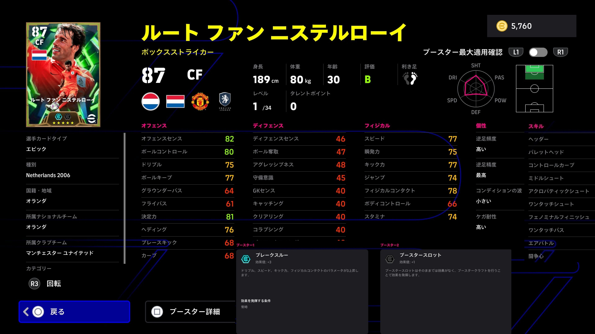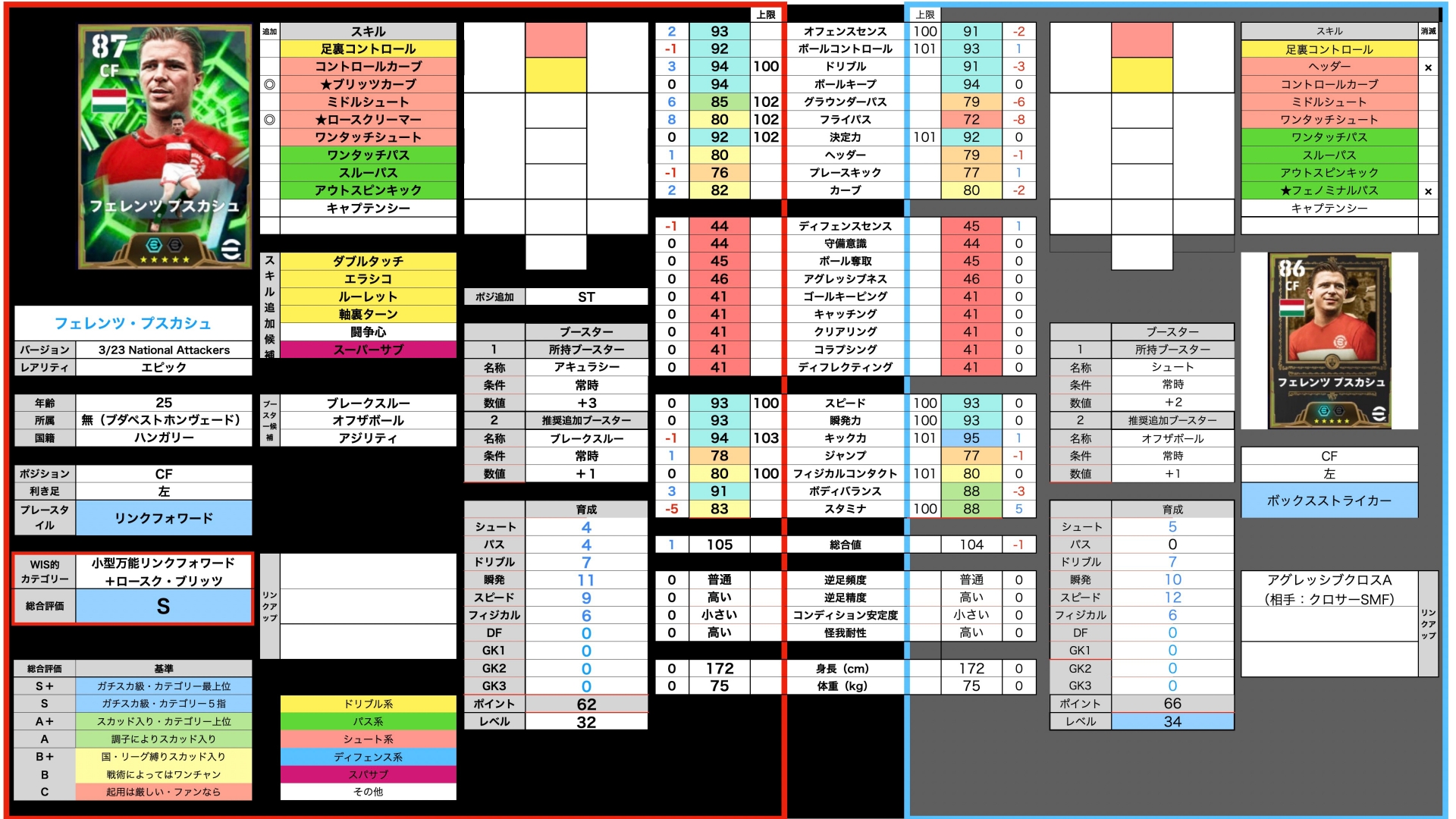 キック力、瞬発力、決定力を90以上、