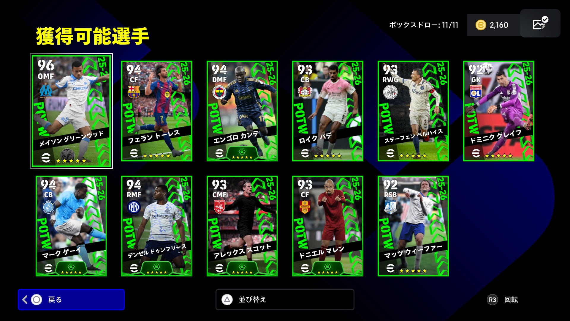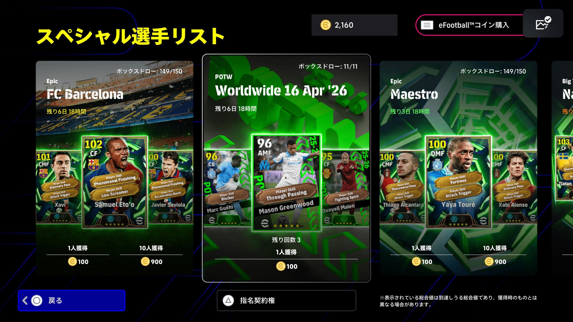 4/16(木)メンテナンス終了後~各国リーグから週間で輝きを放った11人のピックアップ選手が登場!