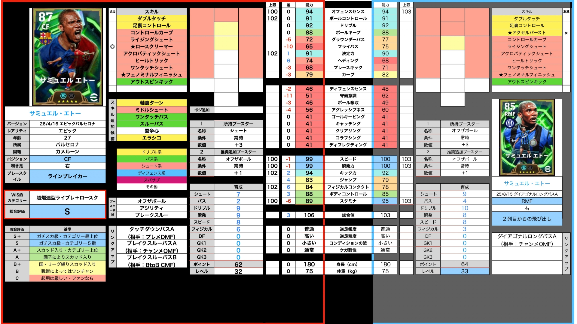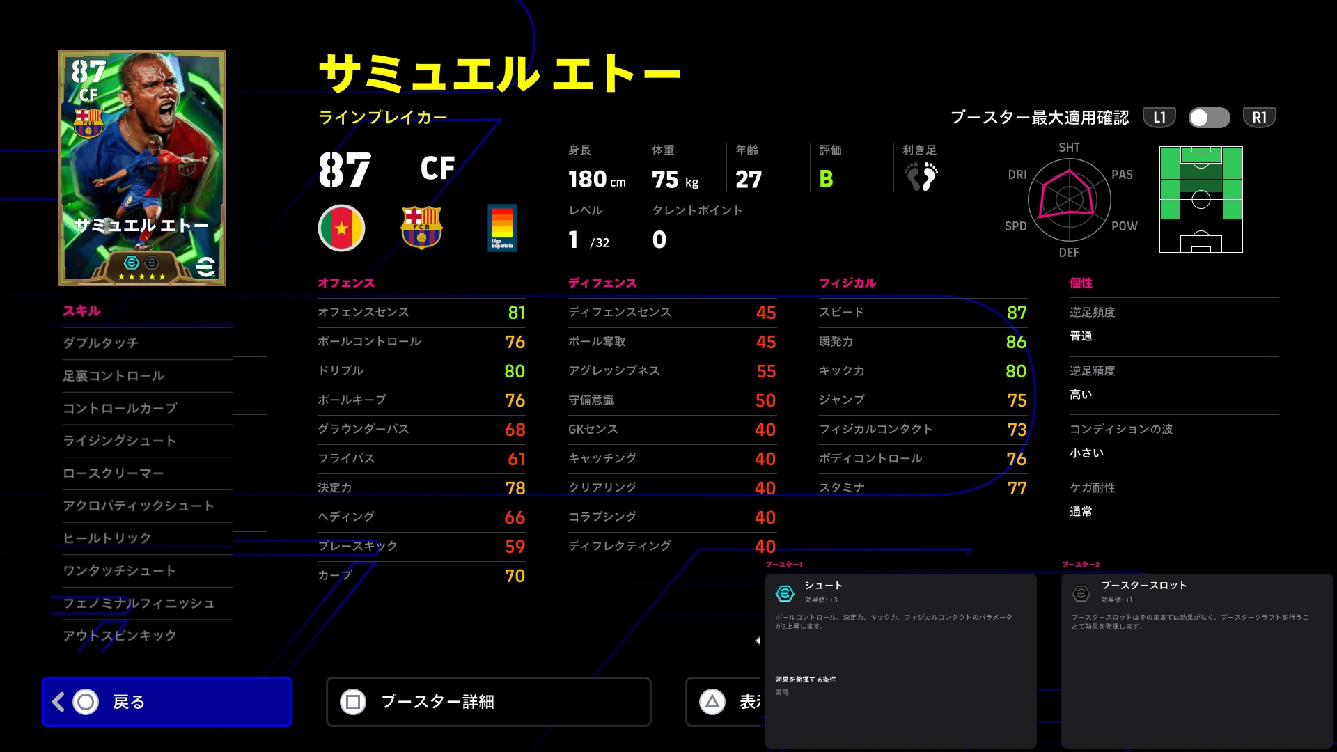 決定力90、フィジカルも80に。