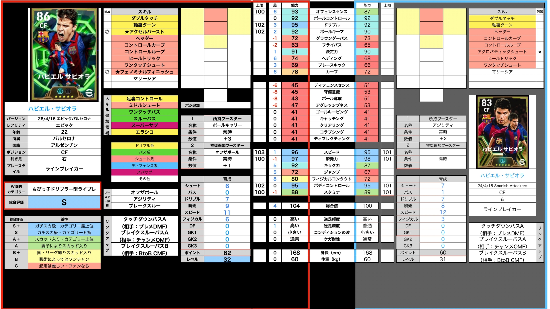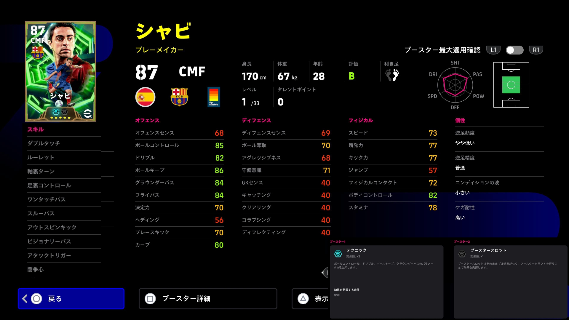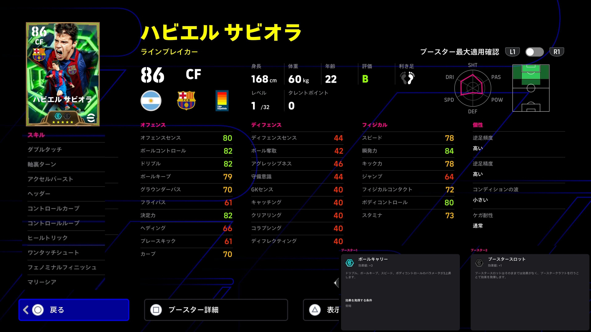 フィジカルとドリブル精度も上げた結果