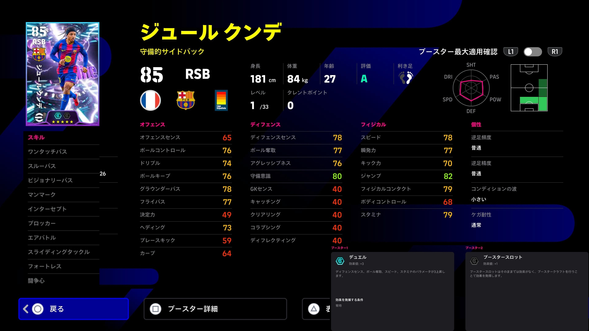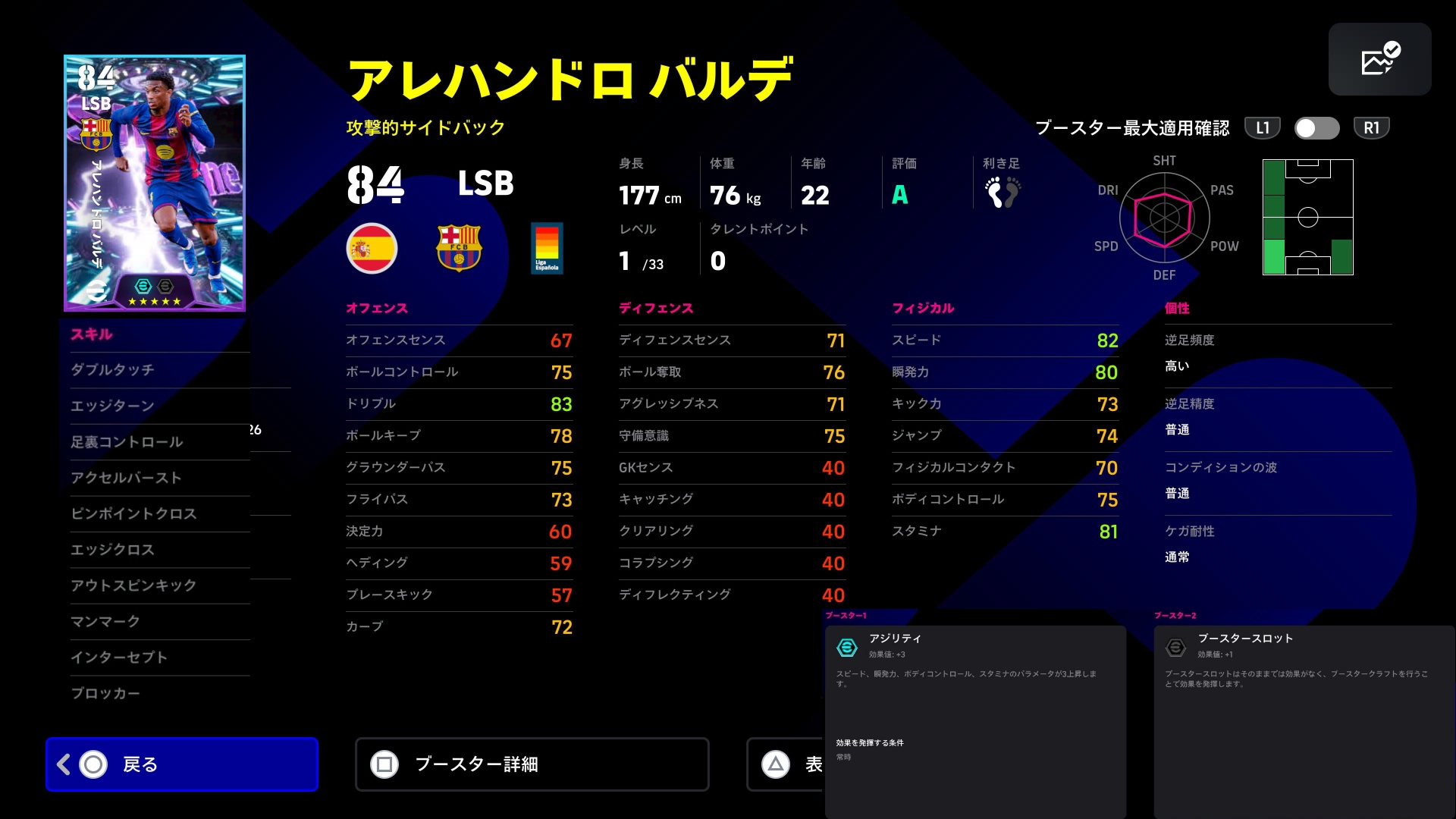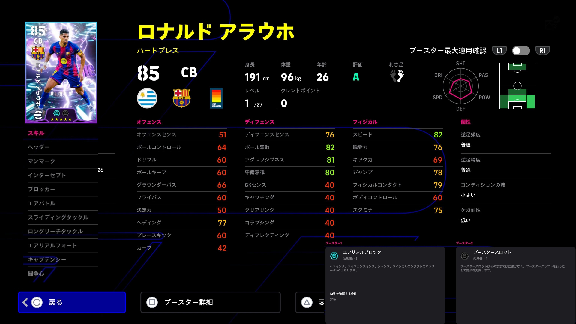スピードに加えフィジカルもバフ+3に。