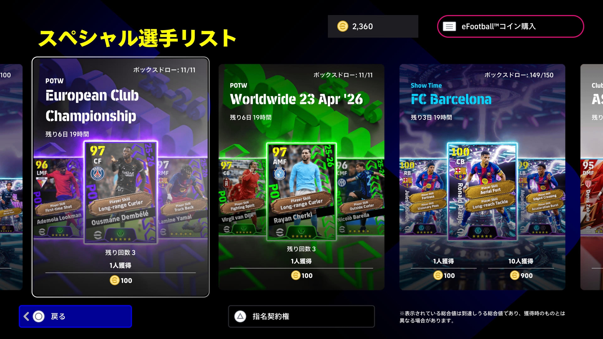 選手とは別に750コインで獲得できる