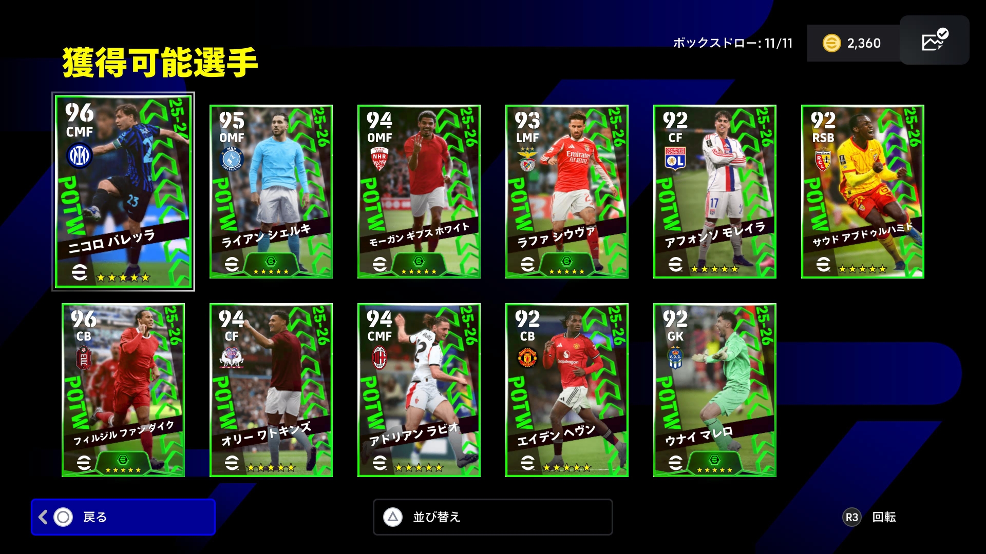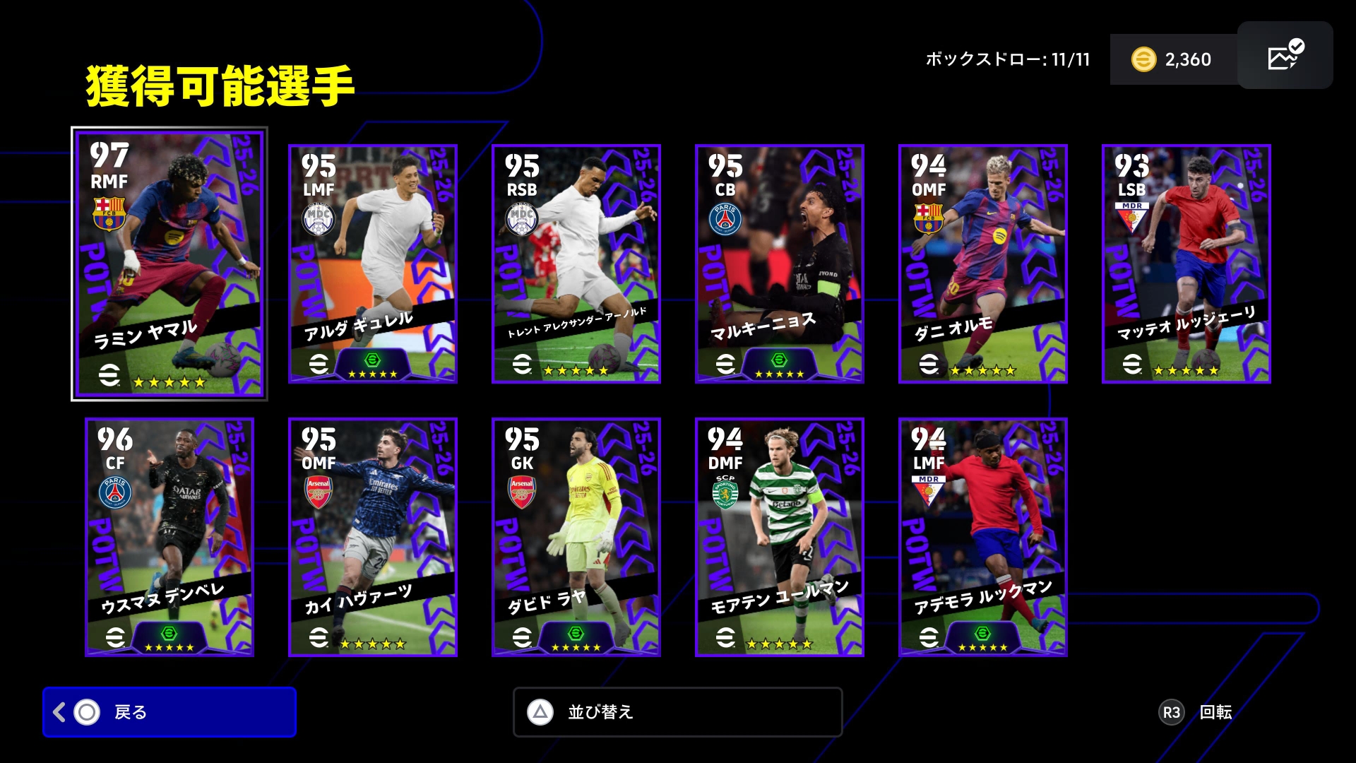 コツは、カーソル当てる選手を
