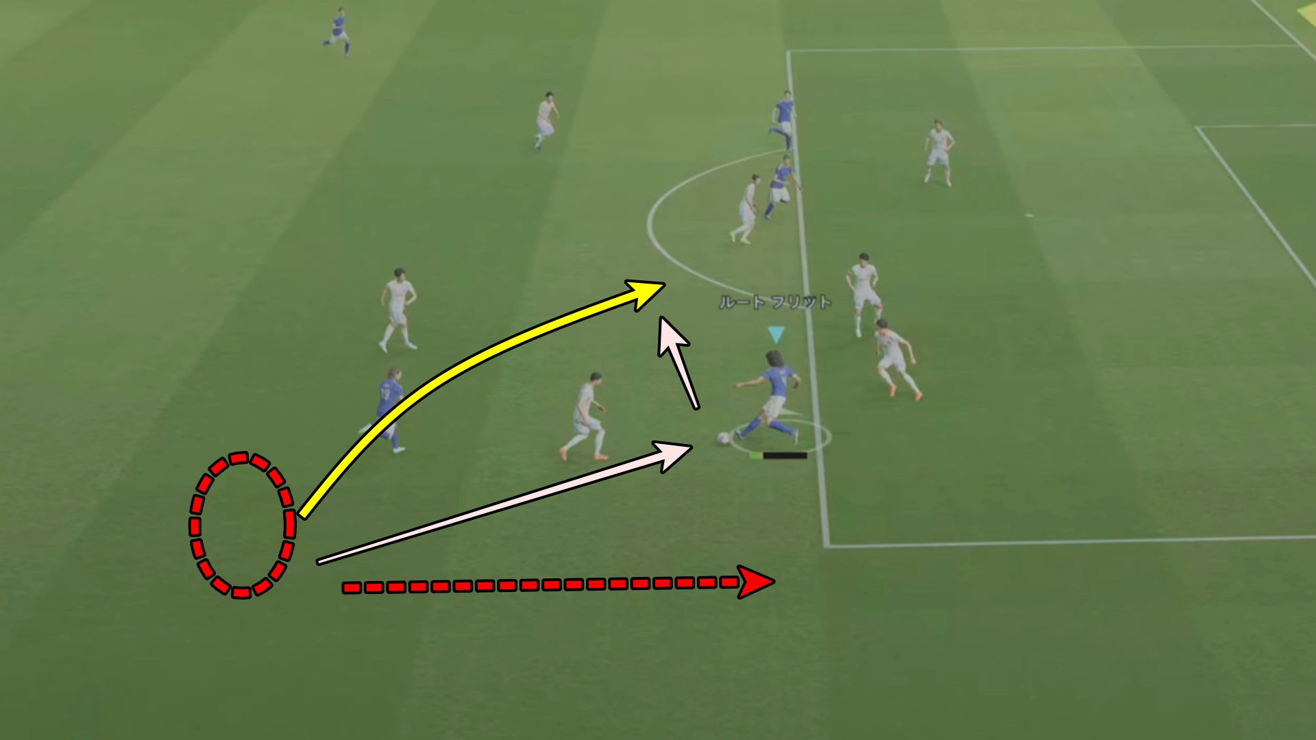 パスの受け手を回り込むように