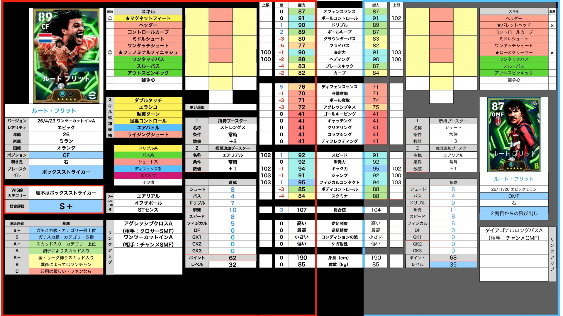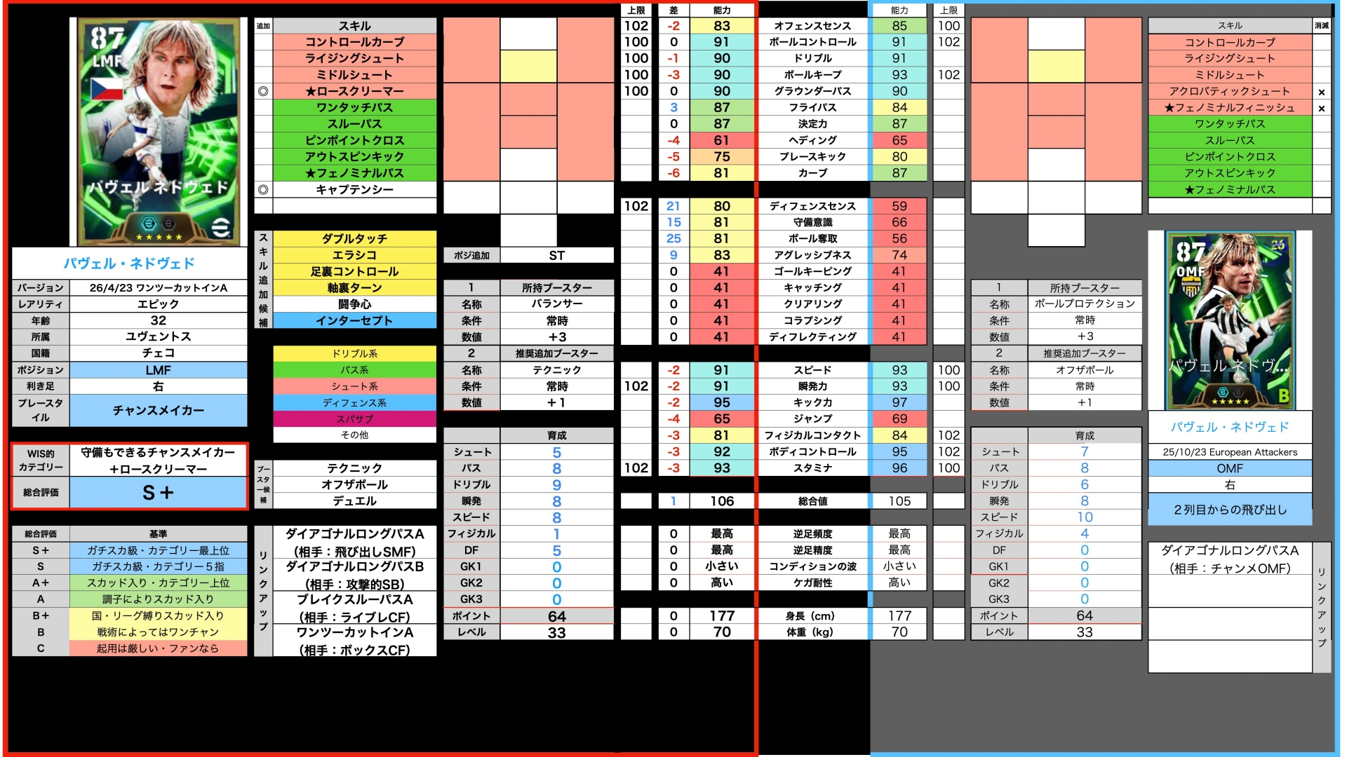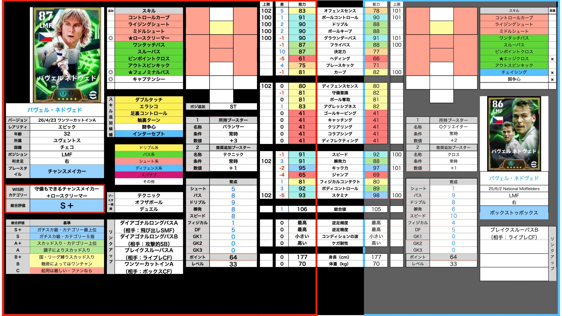 で、その時両名のパスとボルコンの精度上昇。