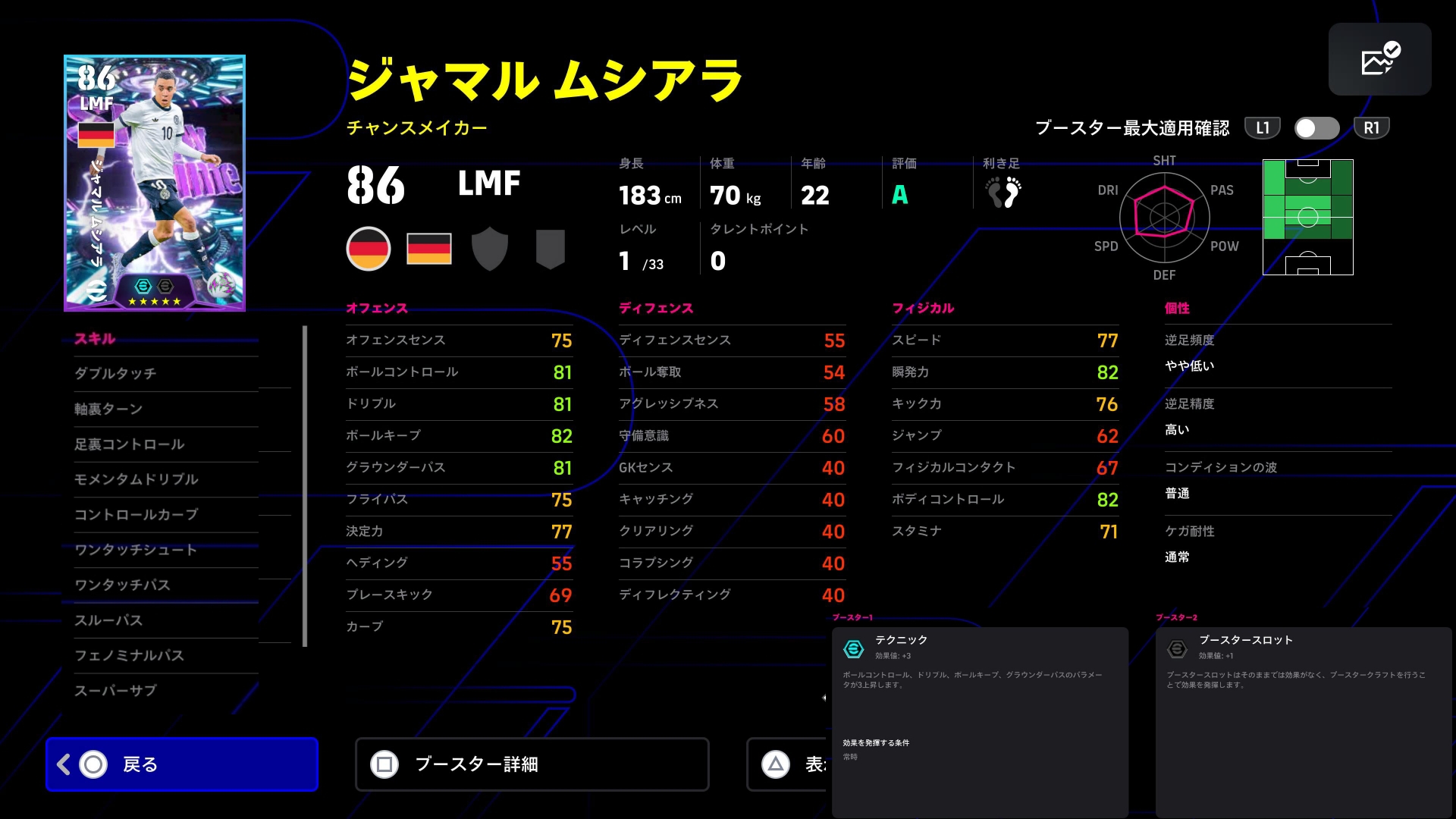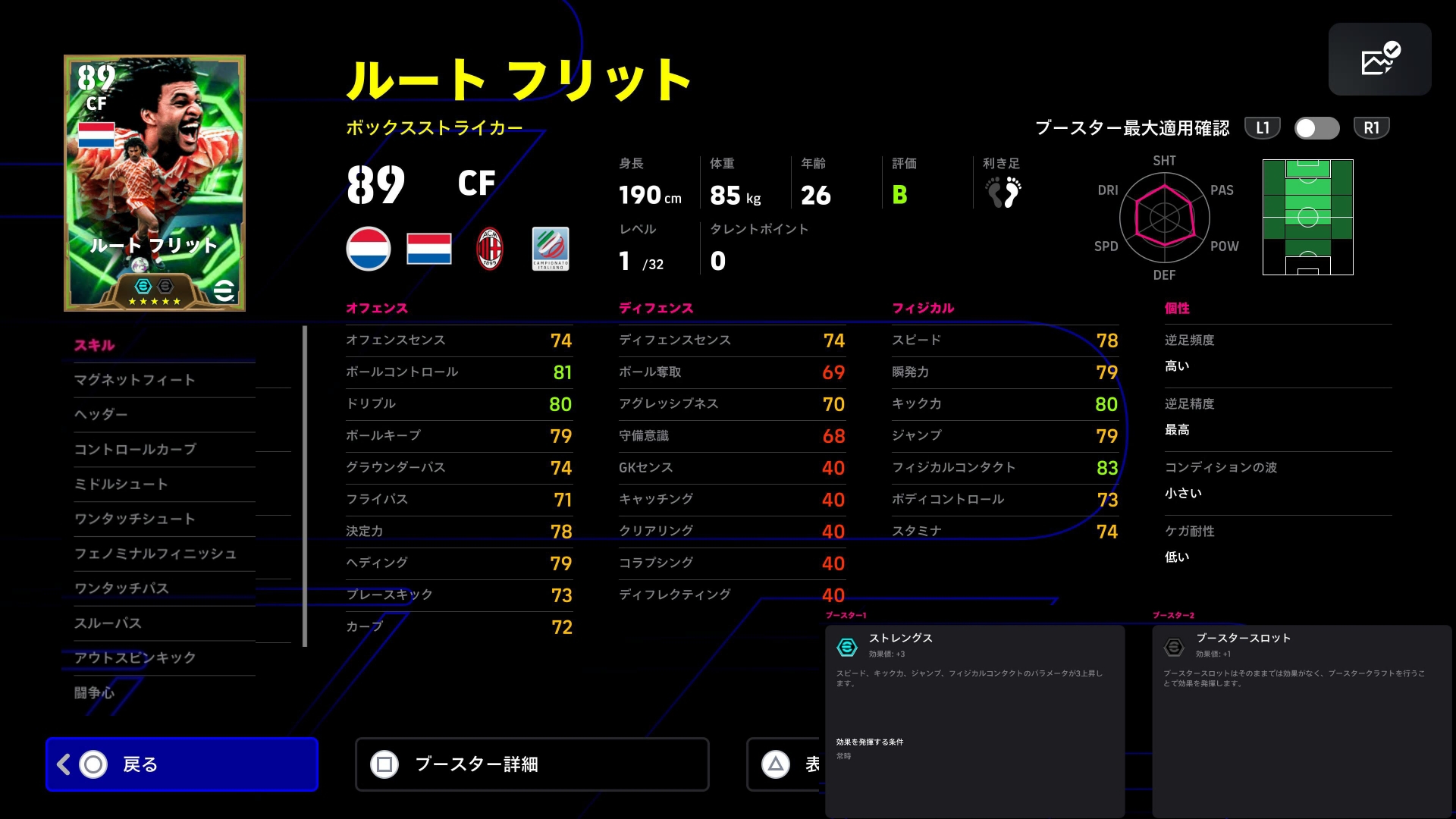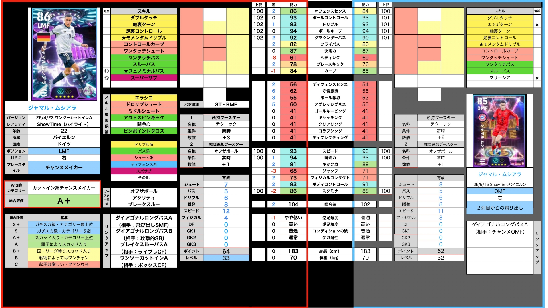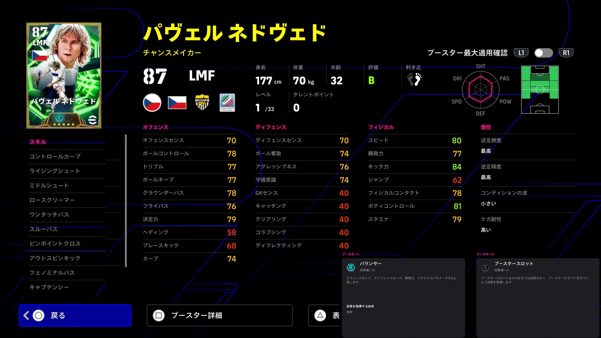 で、その時両名のパスとボルコンの精度上昇。