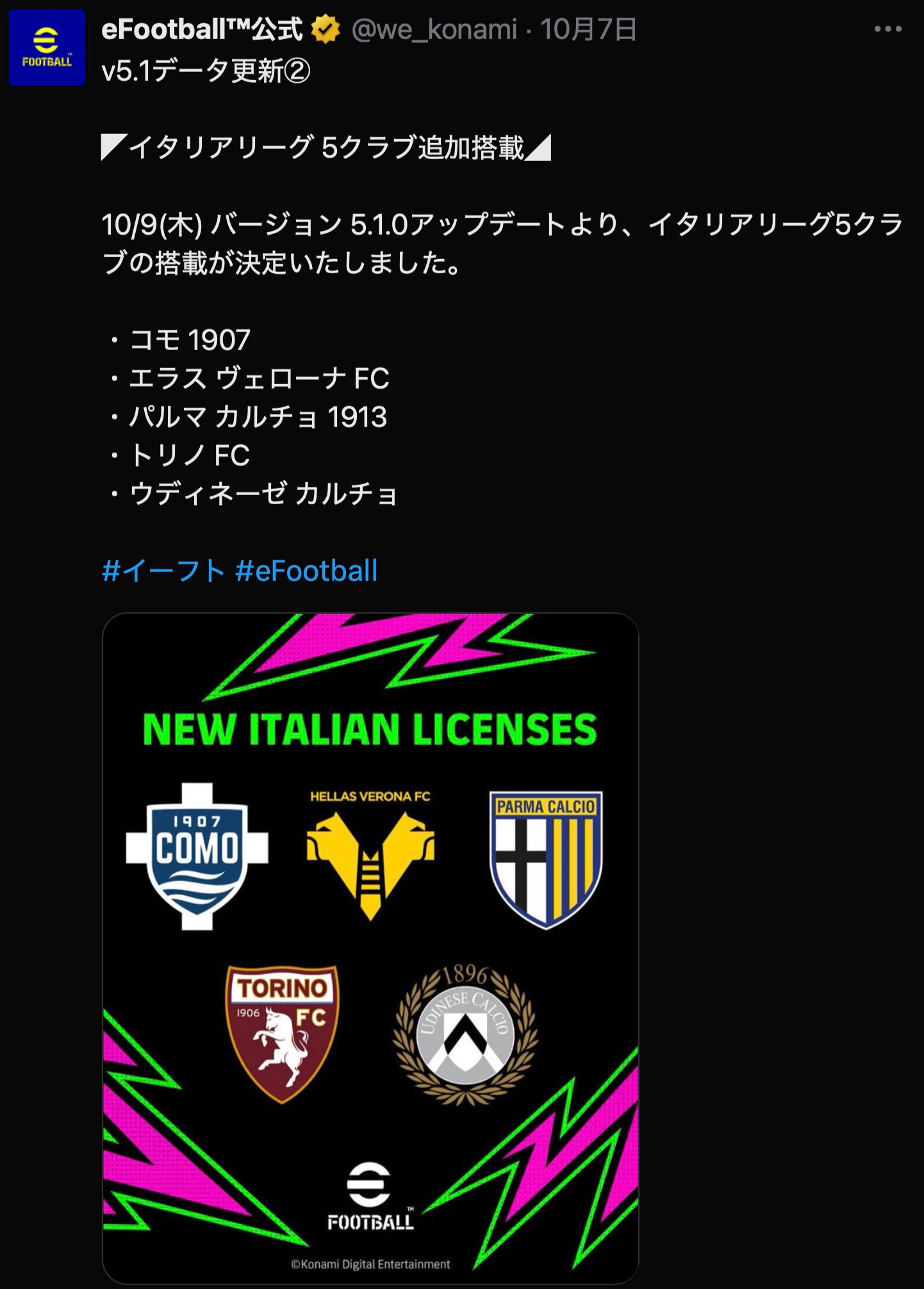 — eFootball™公式 (@we_konami) October 9, 2025