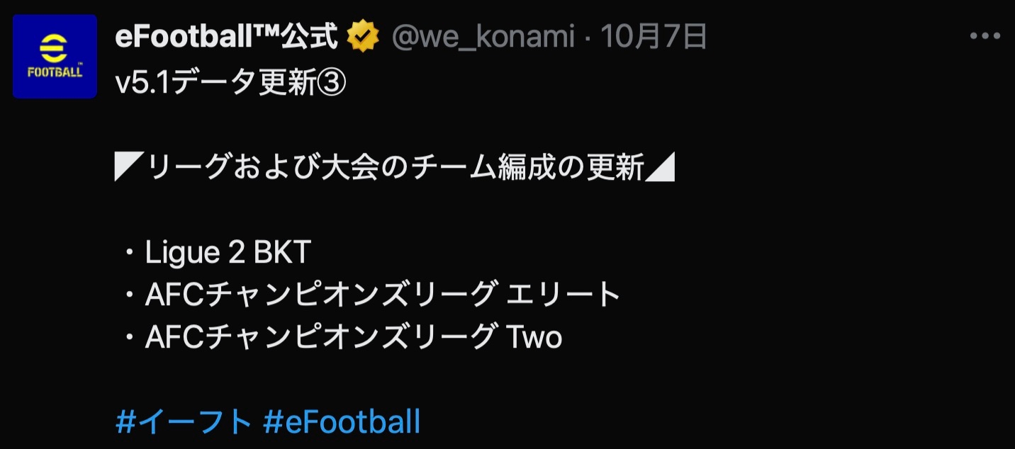 ・AFCチャンピオンズリーグ Two#イーフト #eFootball— eFootball™公式 (@we_konami) October 7, 2025