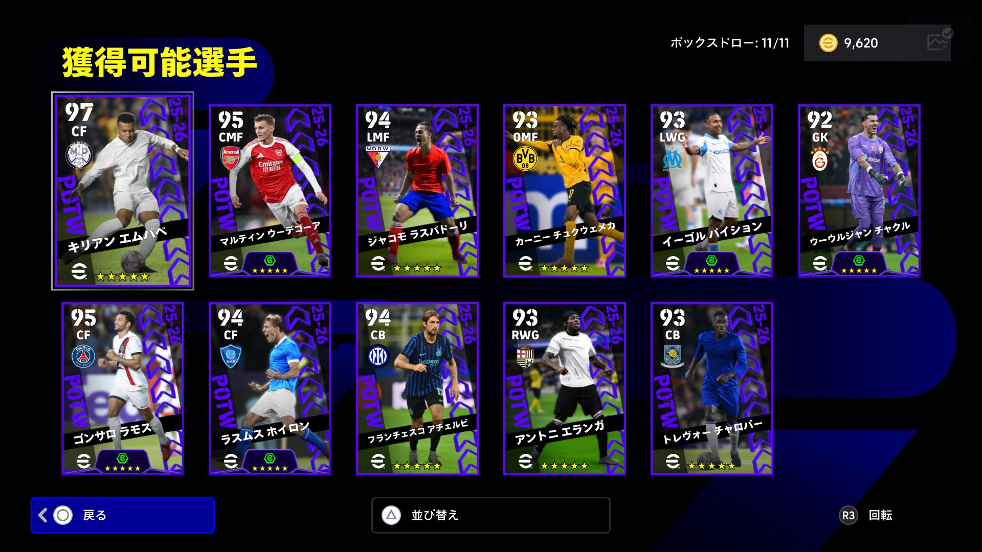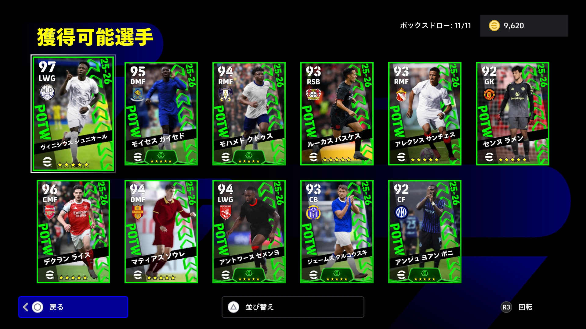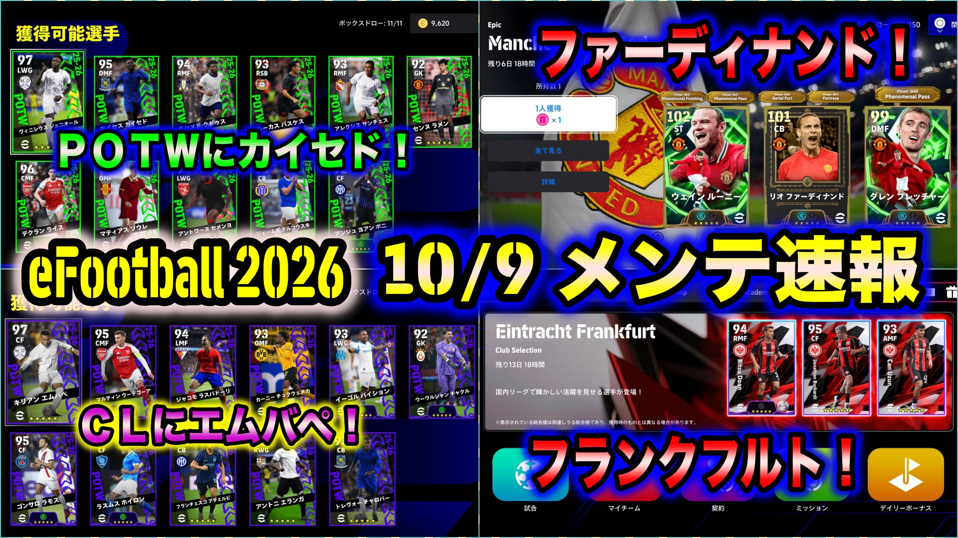 10/9(木)メンテナンス終了後~各国リーグと欧州大会から週間で輝きを放った11人のピックアップ選手が登場!