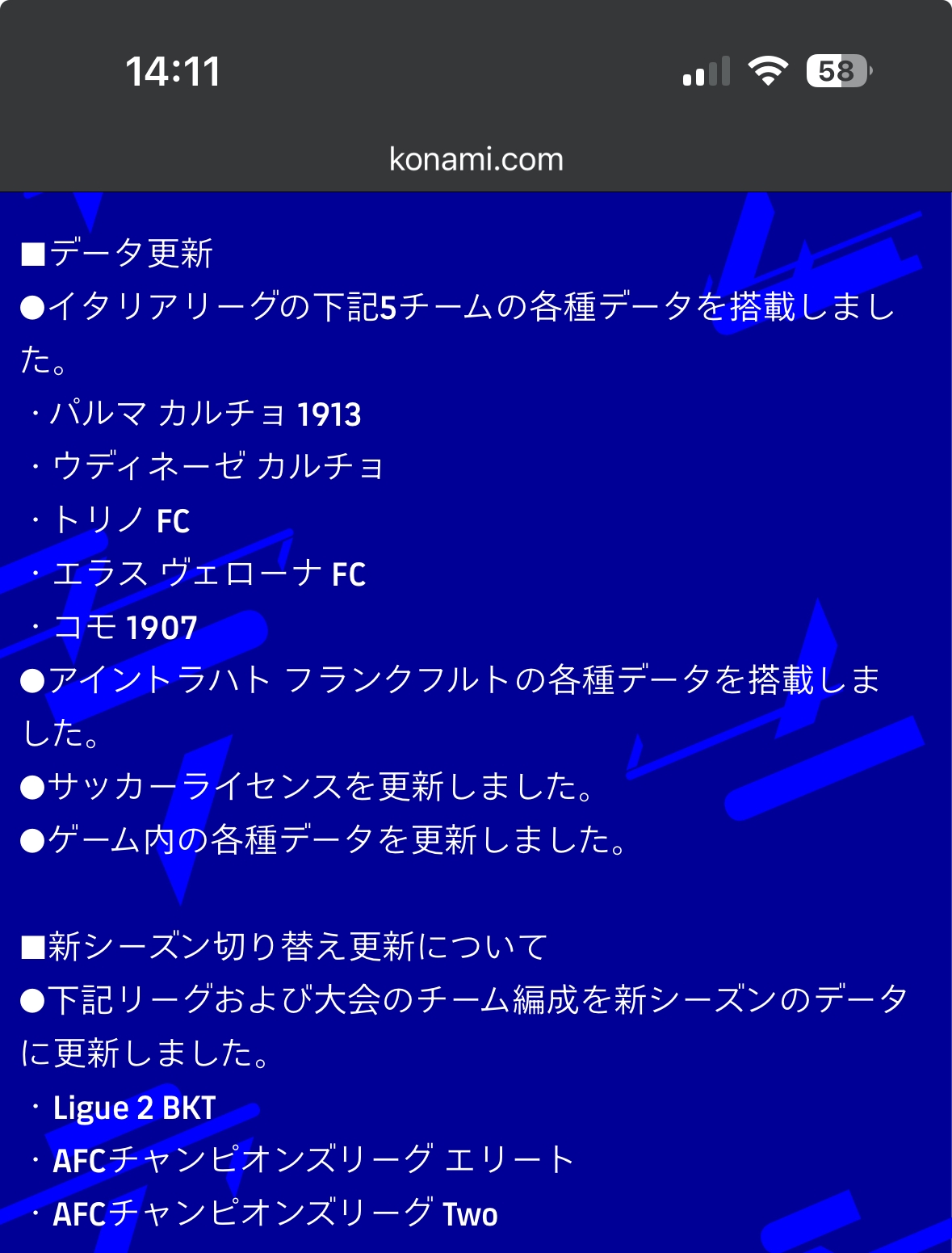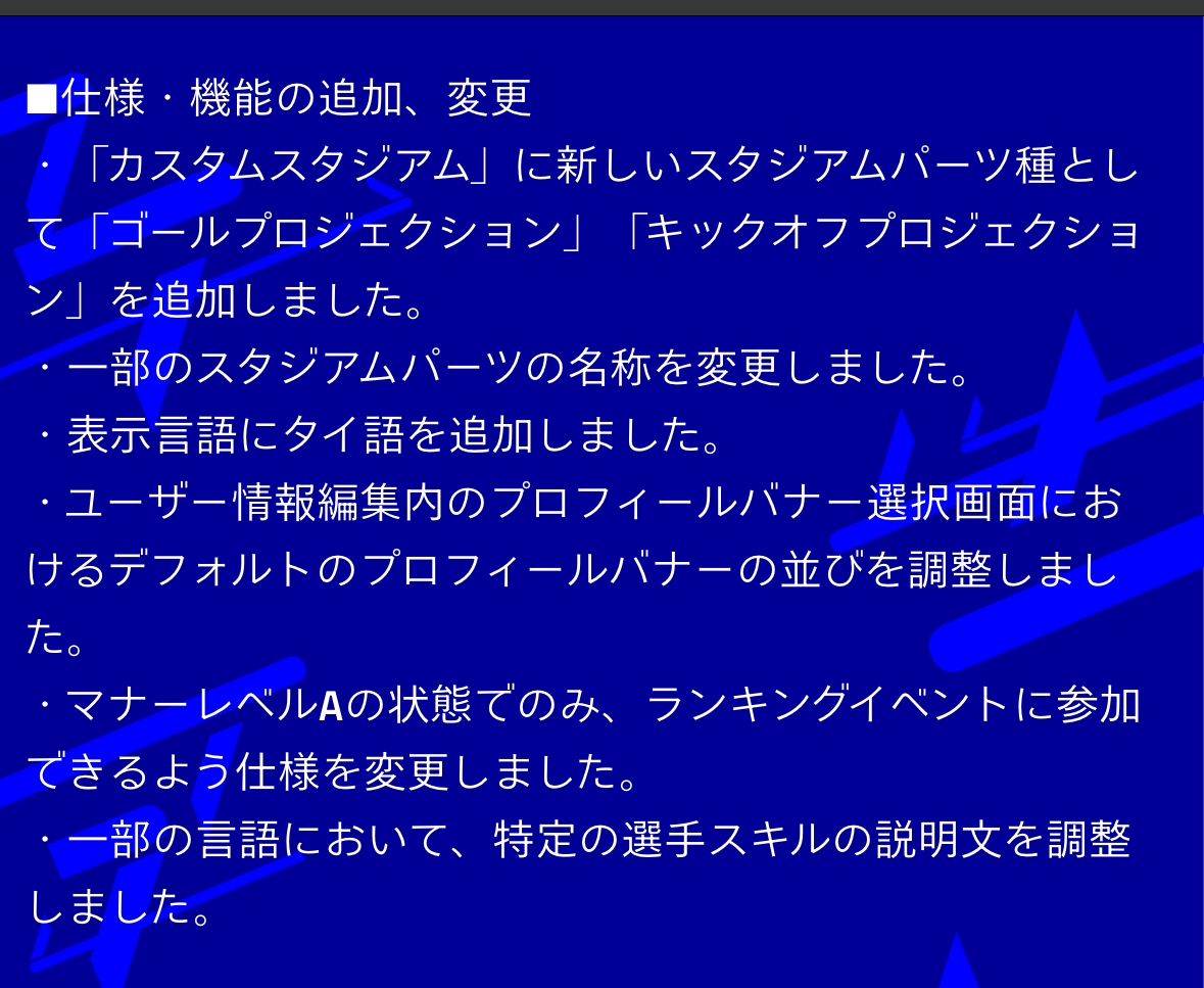 ACLクラブ等も最新版に
