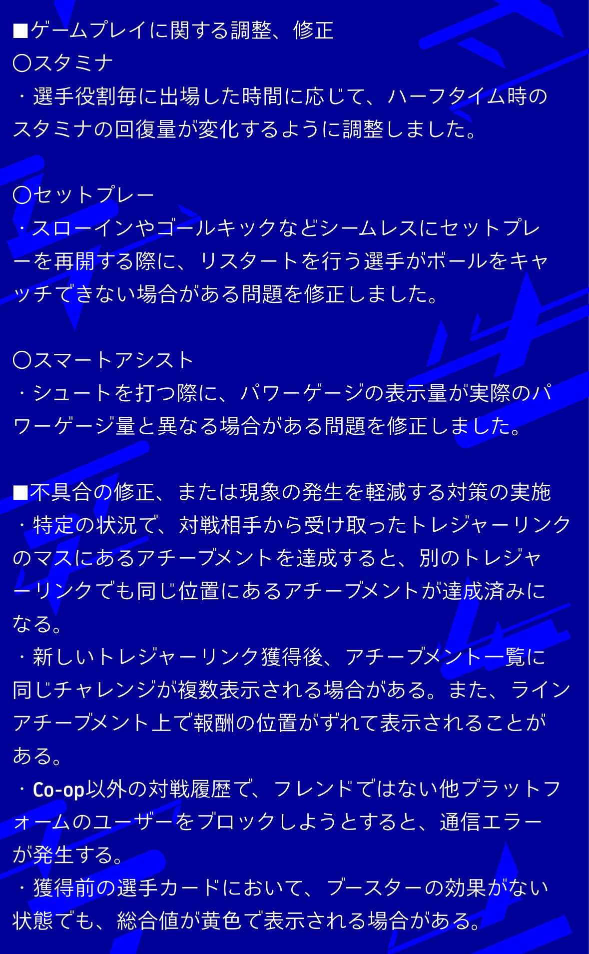 ゲームプレイに修正も入るのか。